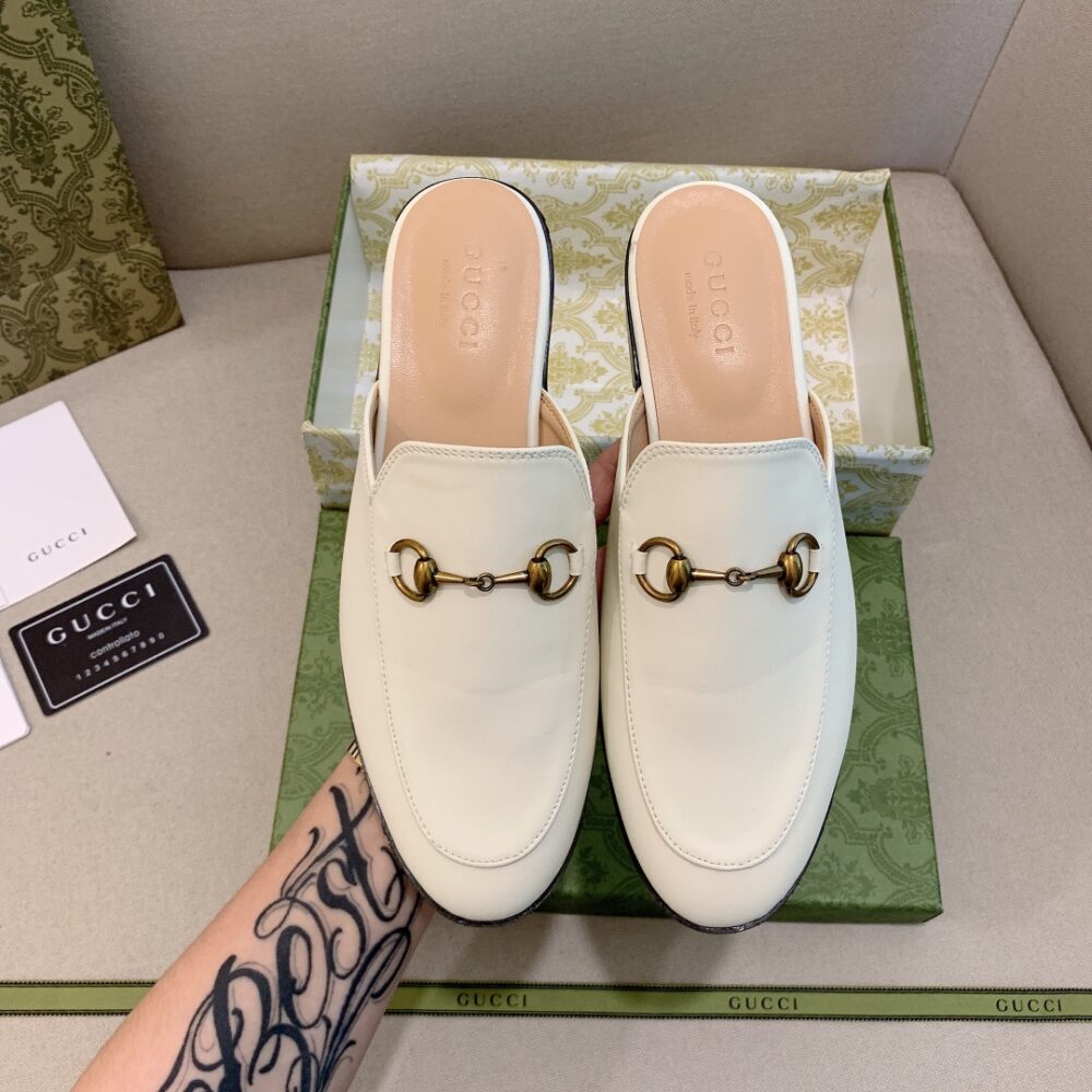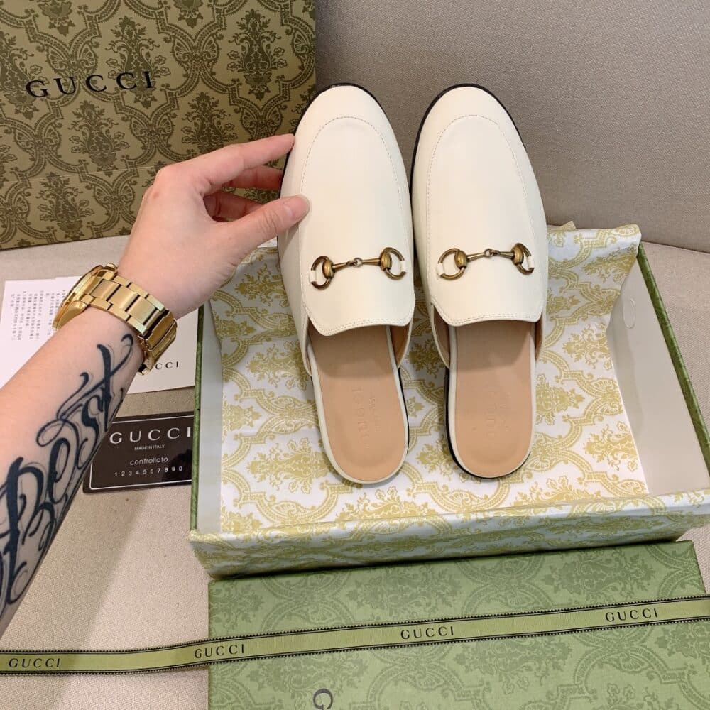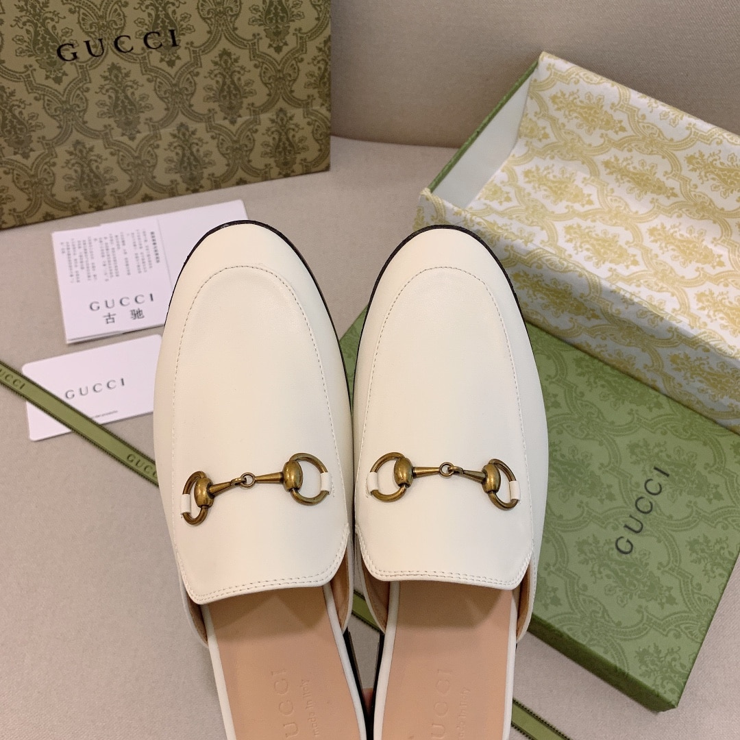 GUCCI PRINCETOWN LEATHER SLIPPER WHITE 423513 C9D00 9022