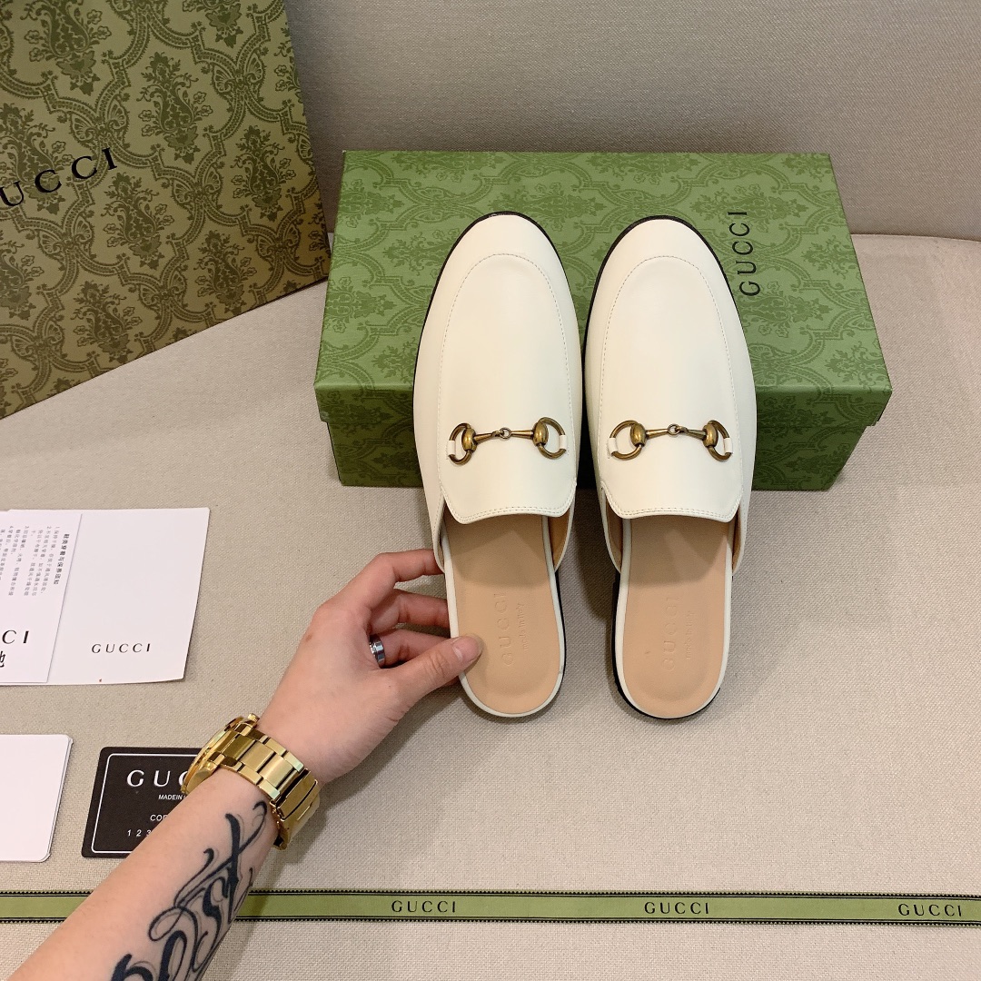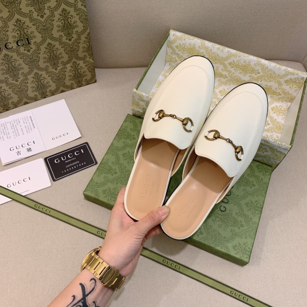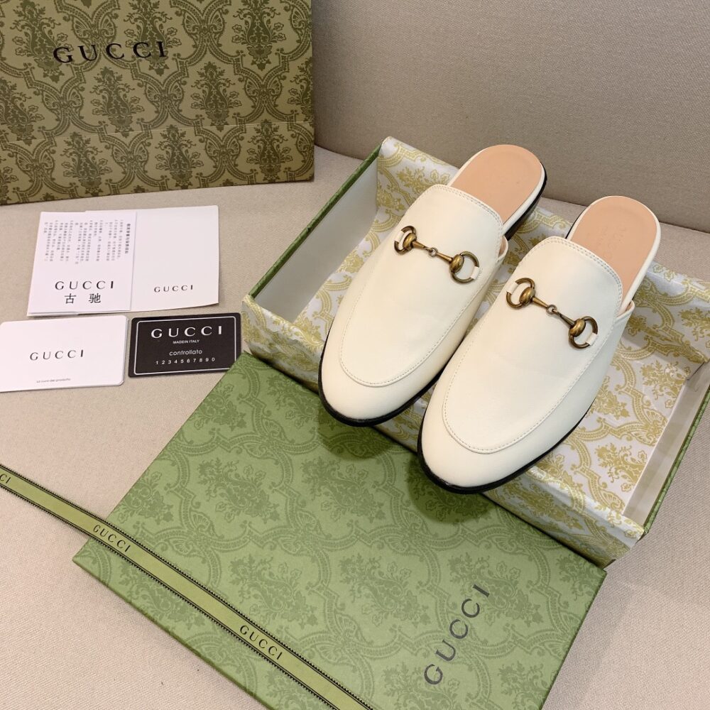 GUCCI PRINCETOWN LEATHER SLIPPER WHITE 423513 C9D00 9022