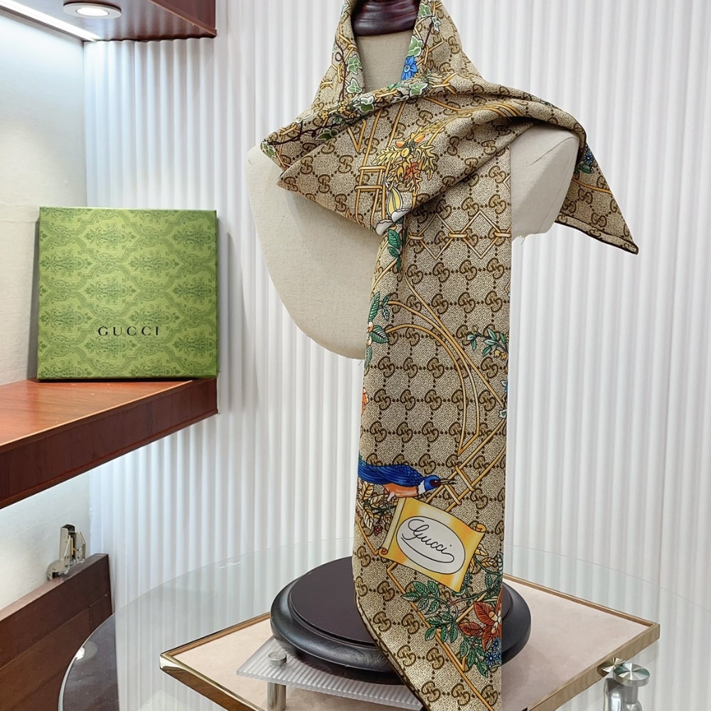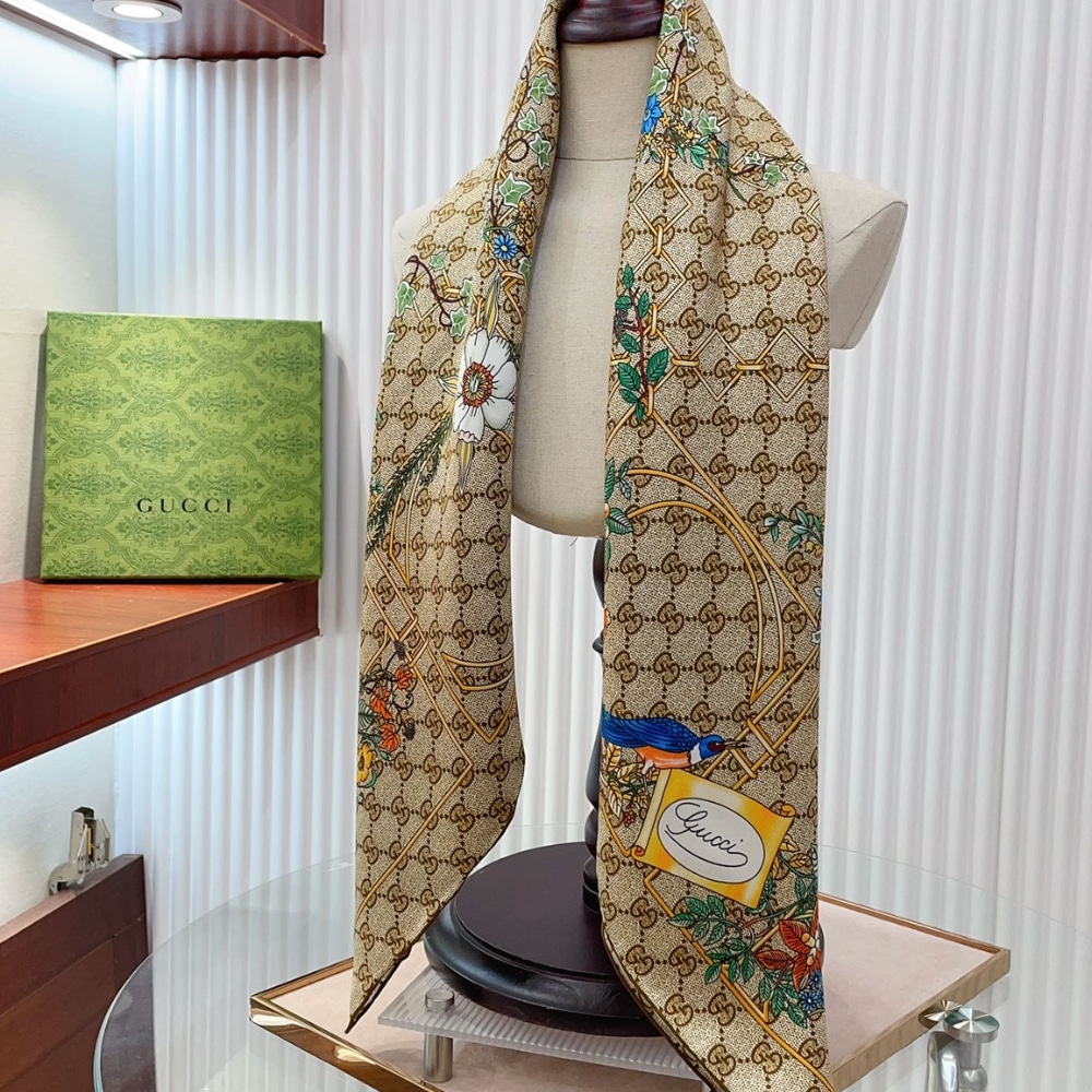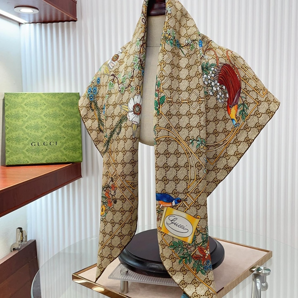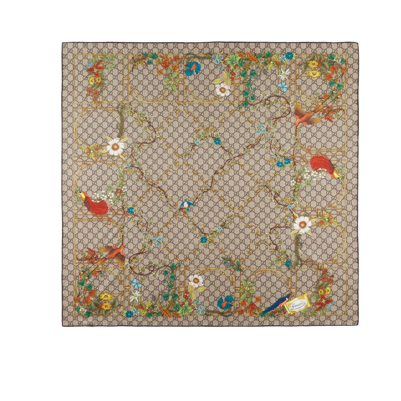GUCCI PRINT SILK TWILL CARRÉ ANIMAL AND FLORAL BROWN 90CM 777066 3G001 9564