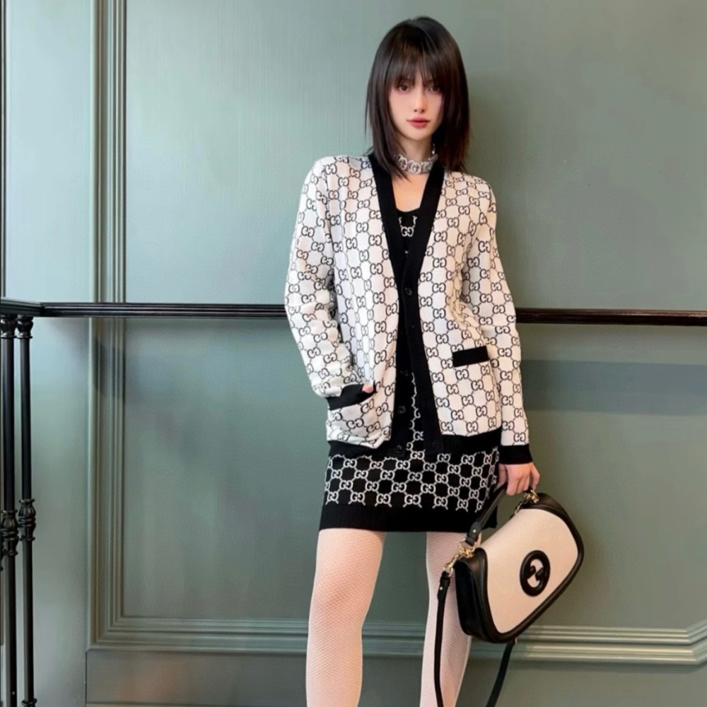 Gucci Cardigan / Black And White GG jacquard / Wool / Straight fit / Daily outfits / Cozy Clothes