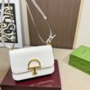 In the Fall Winter 2025 collection, the Gucci Siena small shoulder bag carries forward the evolution of the Horsebit, a signature code that is inherently Gucci. Crafted from fine smooth leather, its structured silhouette is defined by the half Horsebit clasp, a distinctive detail first introduced in the 1970s. Finished with gold-toned hardware and a lined interior featuring three gussets and a zip pocket.