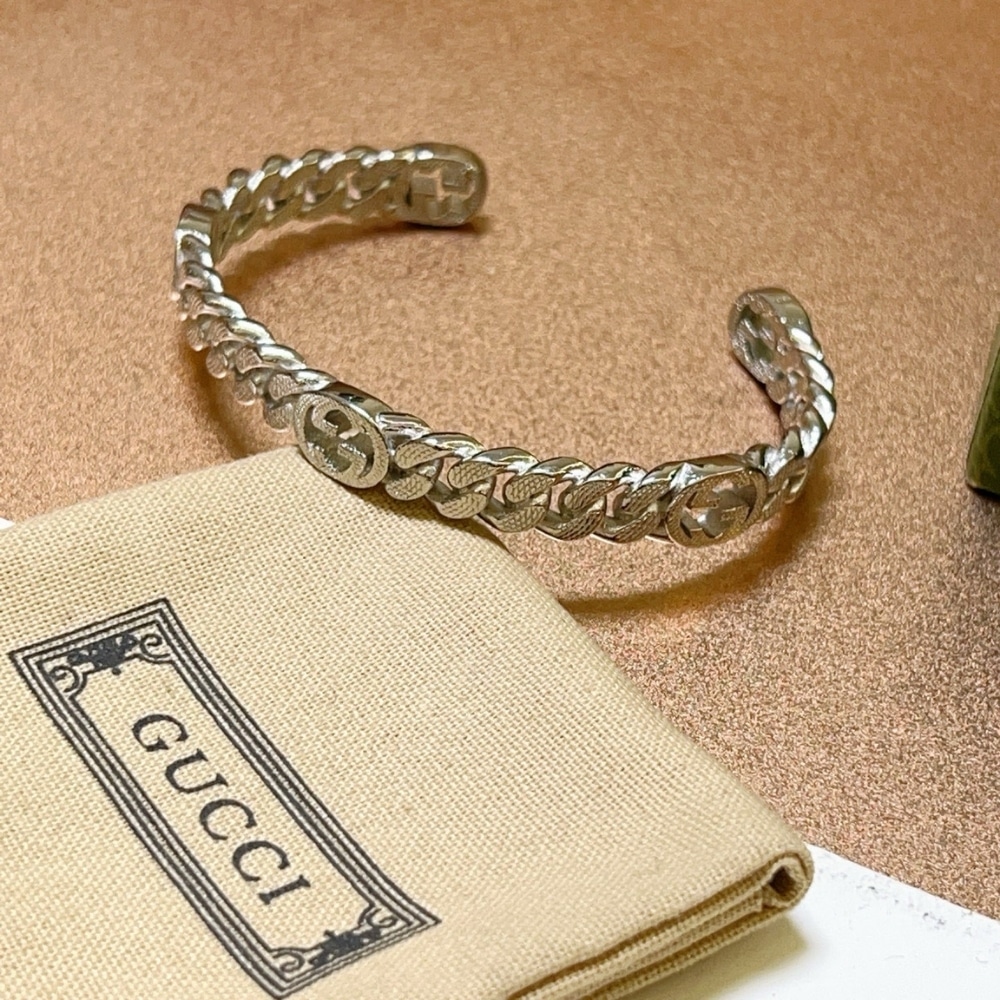 GUCCI SILVER INTERLOCKING G CUFF BRACELET