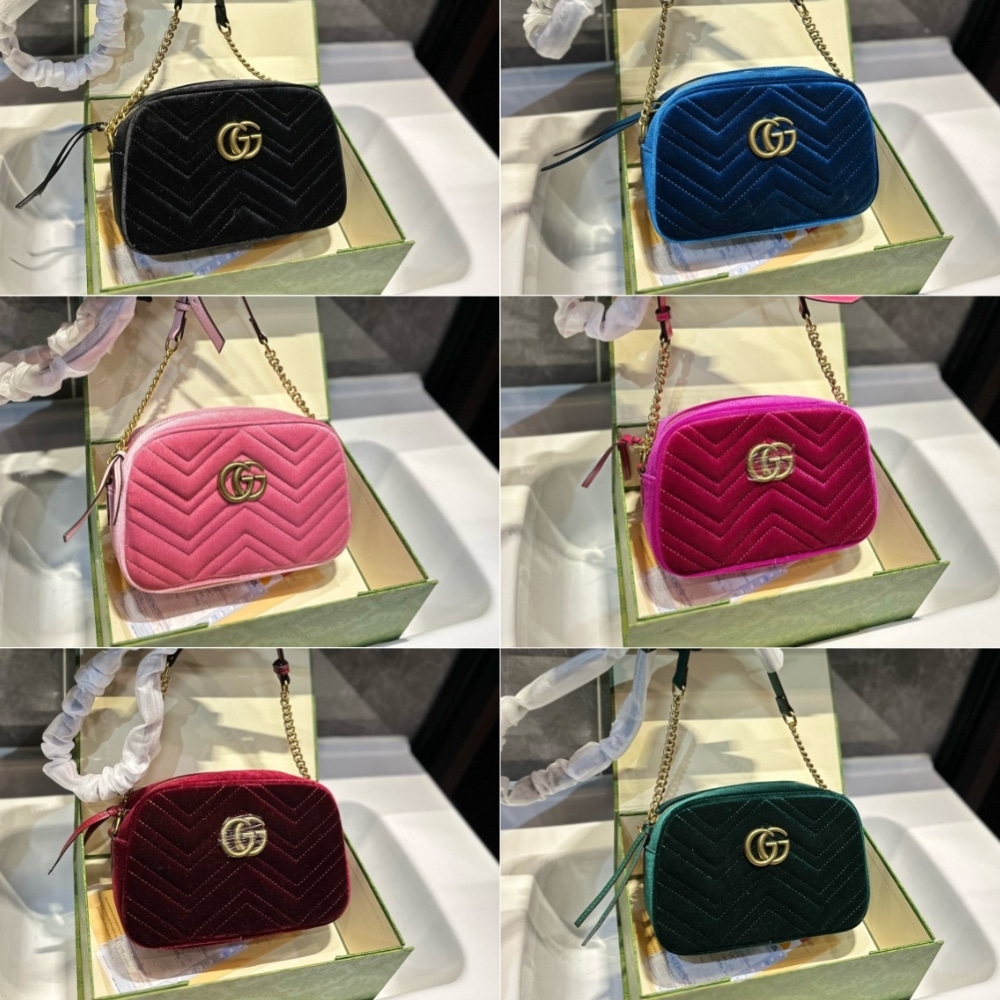 Gucci Small GG Marmont Camera Bag Velvet Wine Red 23 cm/9.1 inches