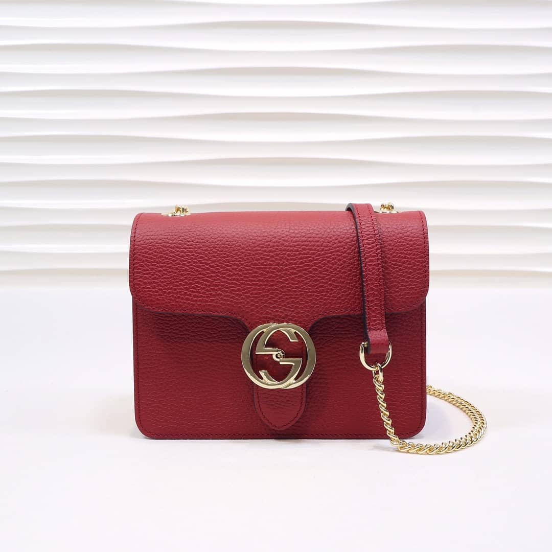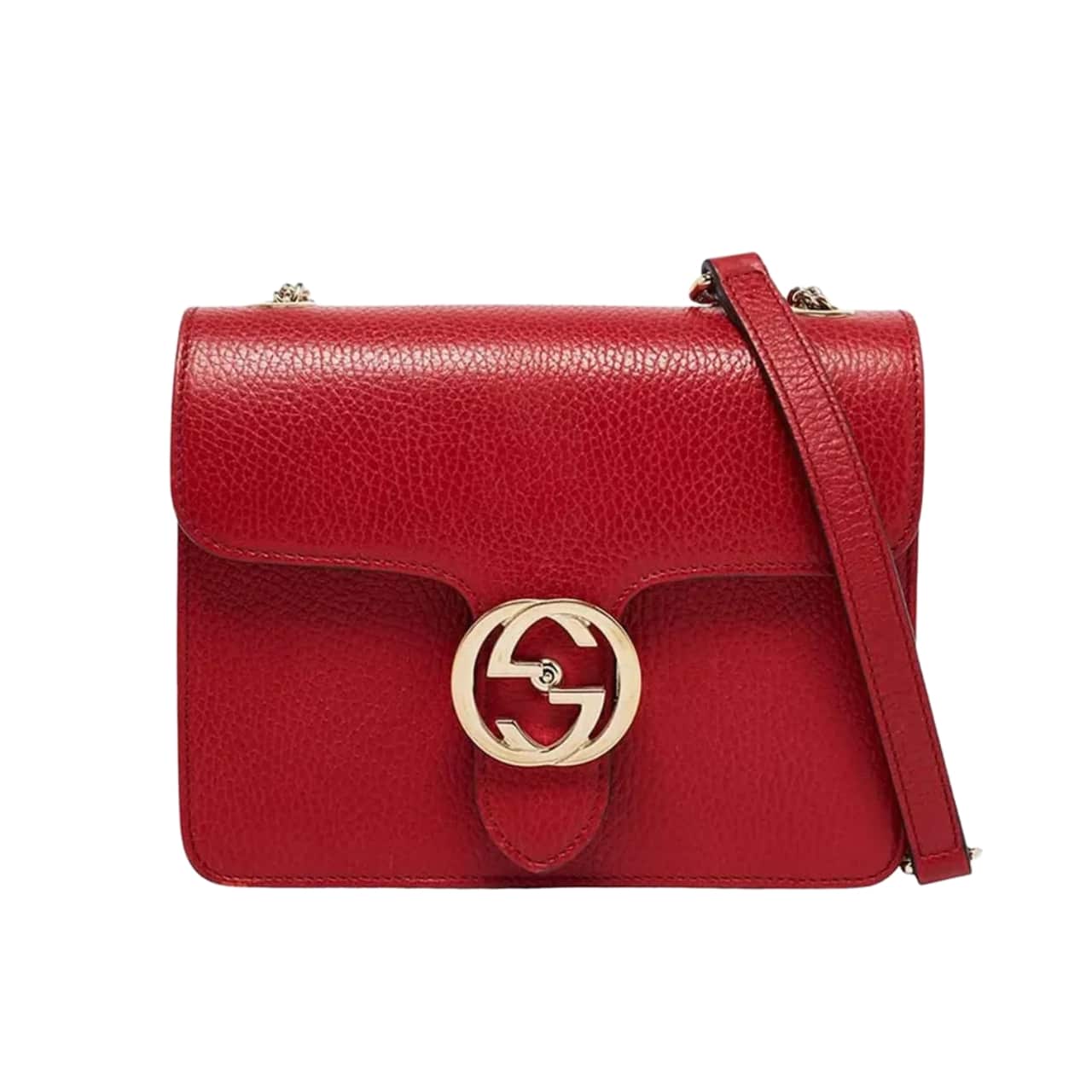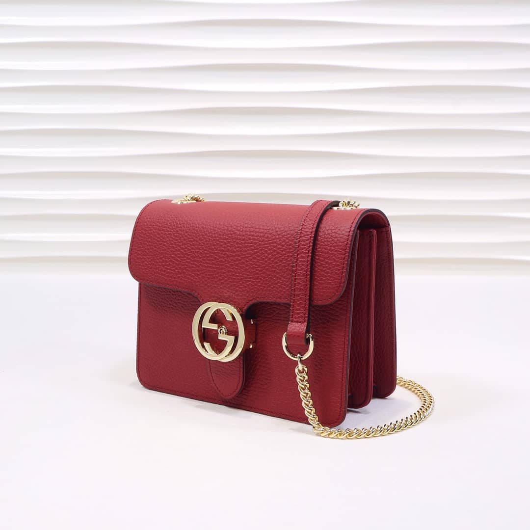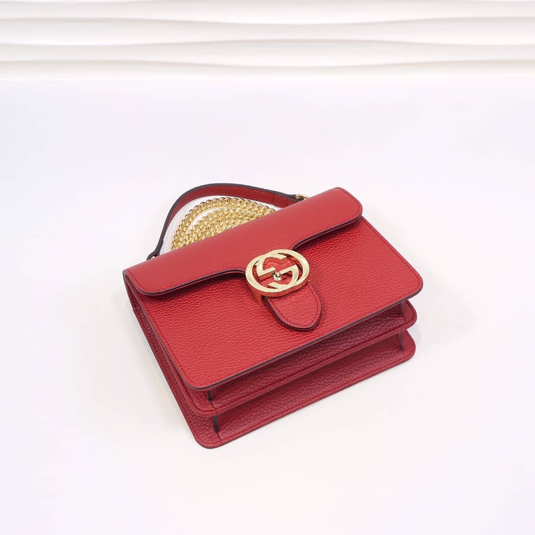 Gucci Small Interlocking G Leather Crossbody Bag Red 19Cm / 7.7 Inches