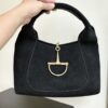 The Gucci Softbit Medium Top Handle Bag in black features a unique, curved hobo-style silhouette accented by the iconic oversized Horsebit hardware in radiant gold-tone metal. The elegant design includes a structured top handle for a comfortable hand carry and a spacious interior to accommodate your daily essentials.