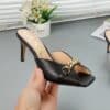Gucci Sylvie Chain Mule Sandals Black Leather 626769 C9D00 1000