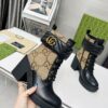 - Beige and ebony maxi GG canvas with black leather details