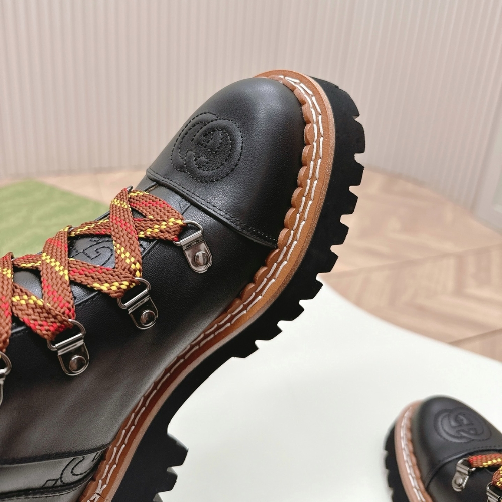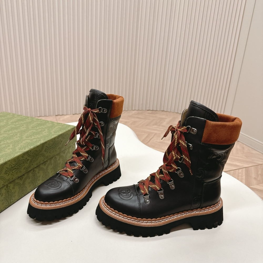 GUCCI WOMEN LACE UP ANKLE BOOT BLACK AND TAN 758284 AACM1 1046