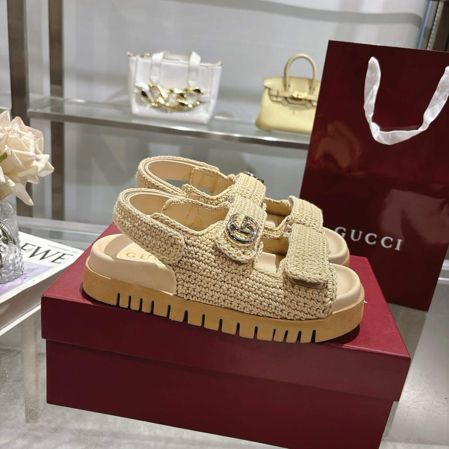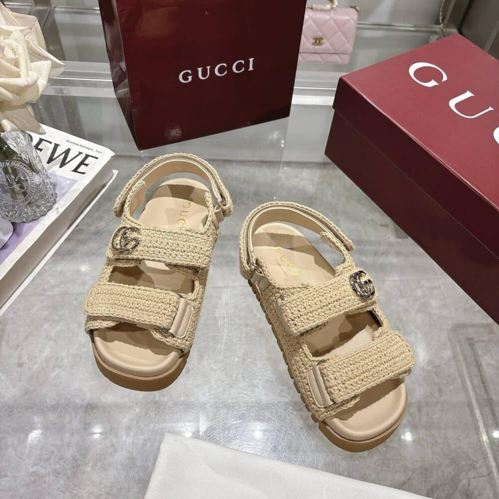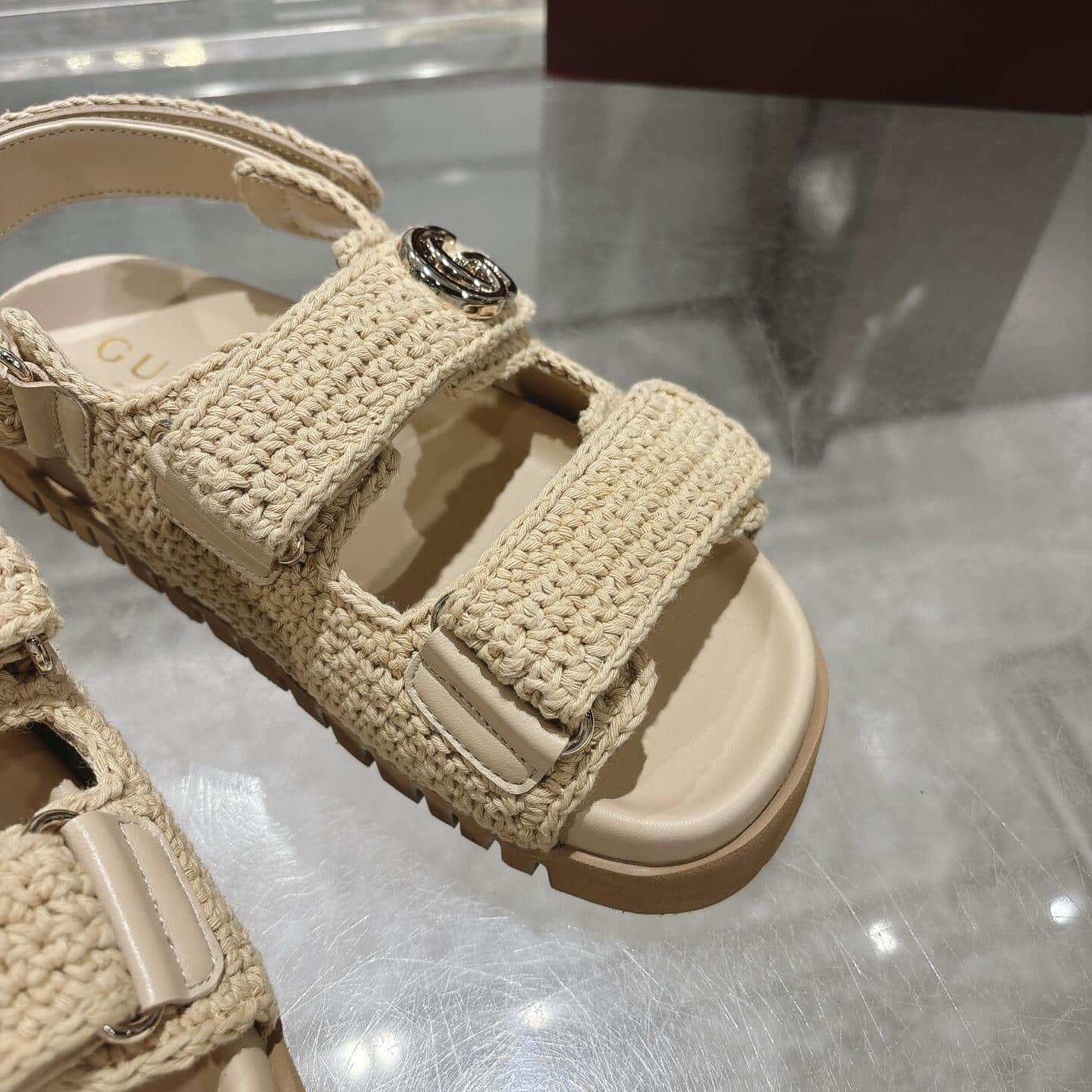 GUCCI WOMEN SANDAL WITH DOUBLE G BEIGE CROCHET ‎835086 FAEQ2 9552
