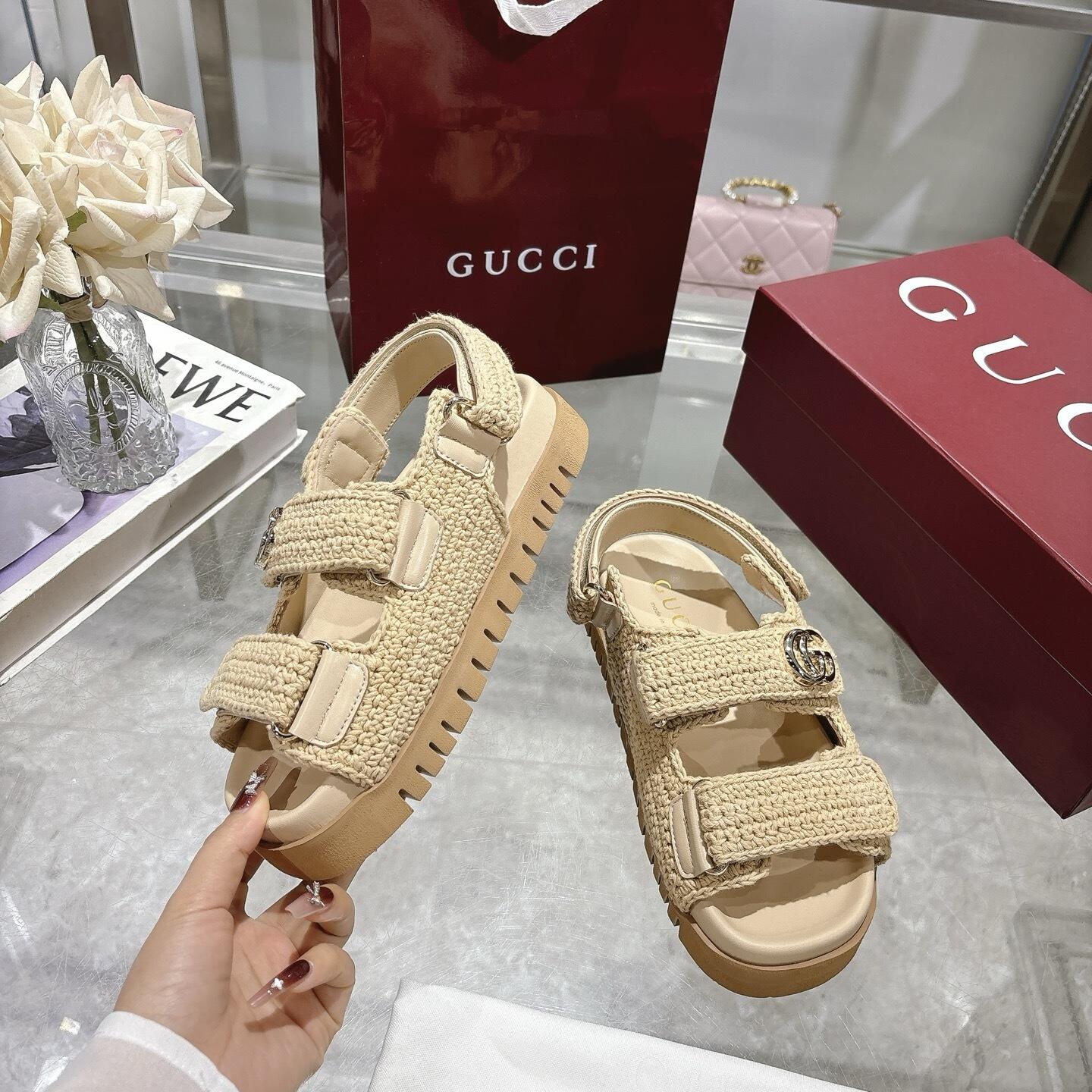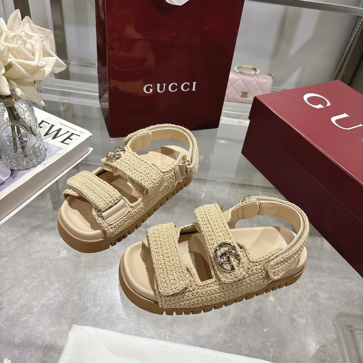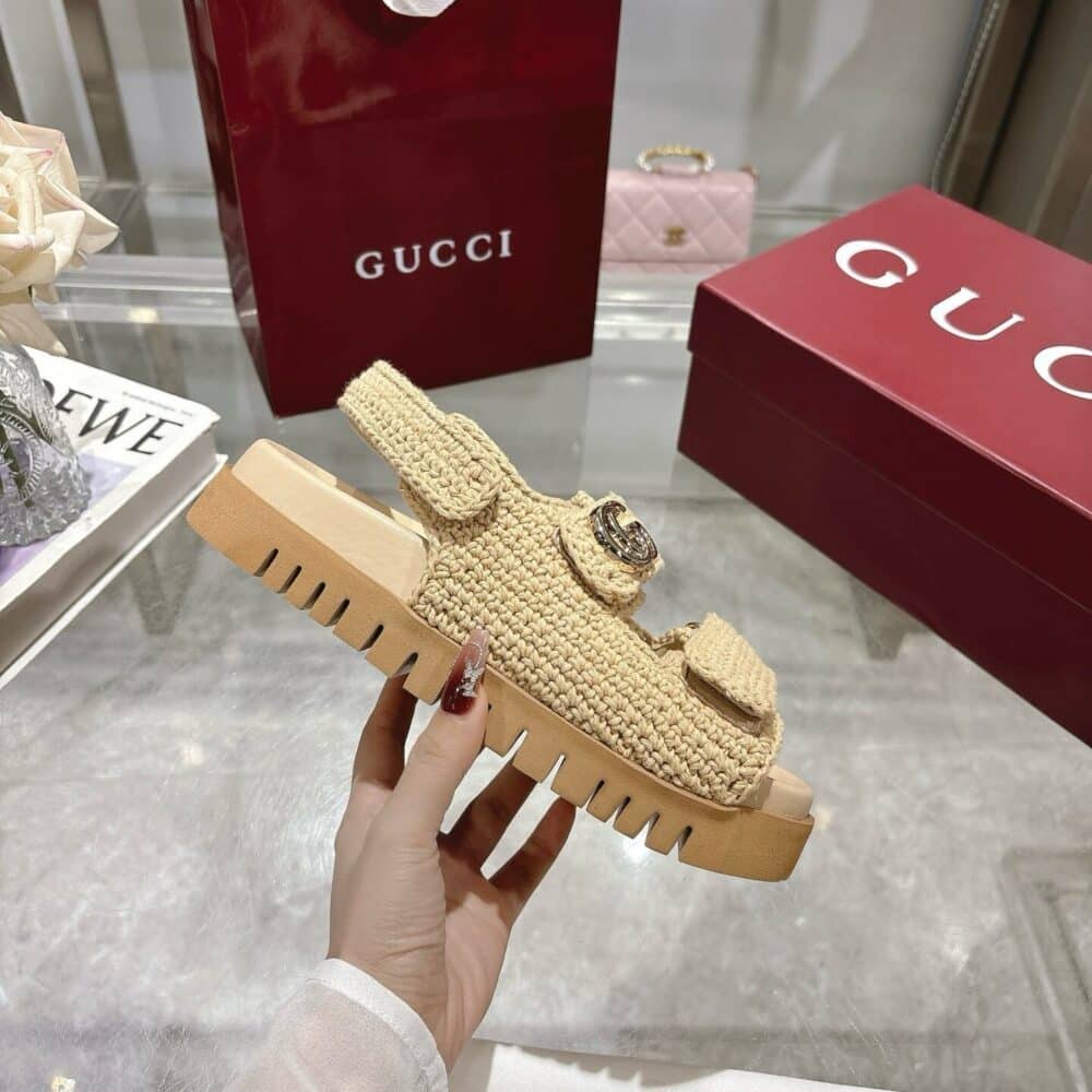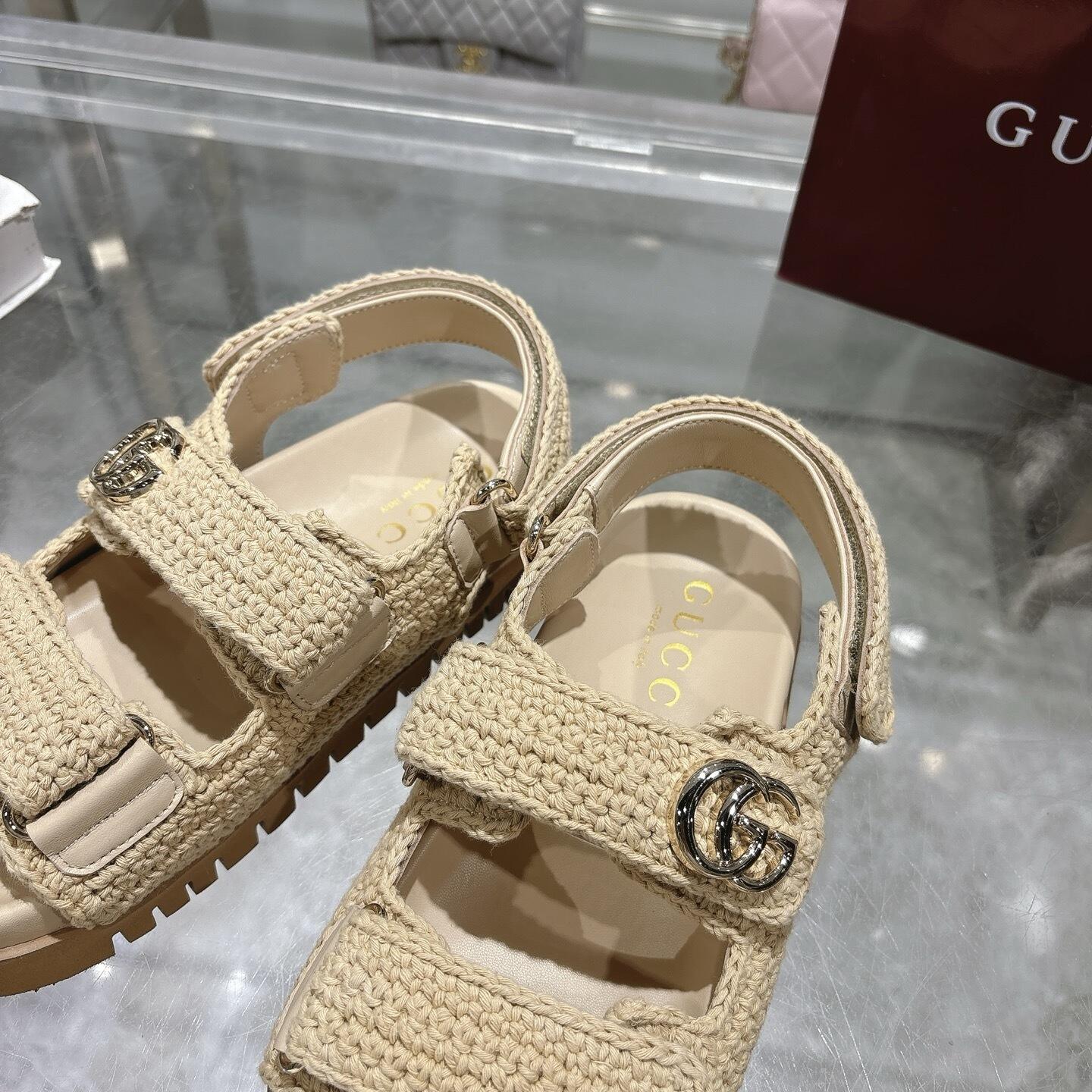 GUCCI WOMEN SANDAL WITH DOUBLE G BEIGE CROCHET ‎835086 FAEQ2 9552