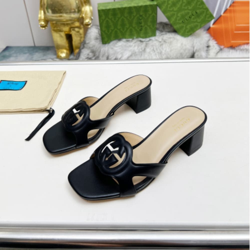 GUCCI WOMEN’S INTERLOCKING G SLIDE SANDAL BLACK 782413 AAAZG 1000