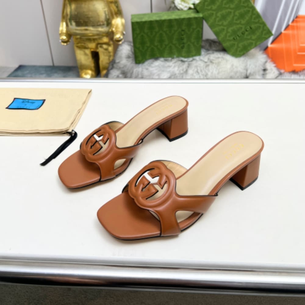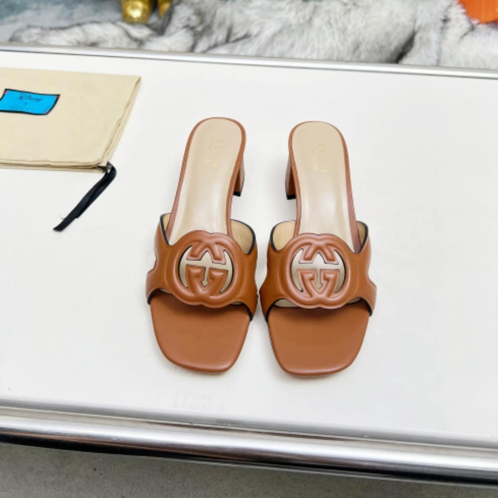 GUCCI WOMEN’S INTERLOCKING G SLIDE SANDAL BROWN 782413 AAAZG 2535
