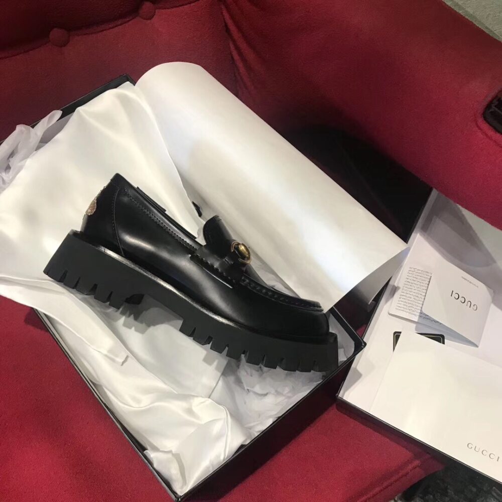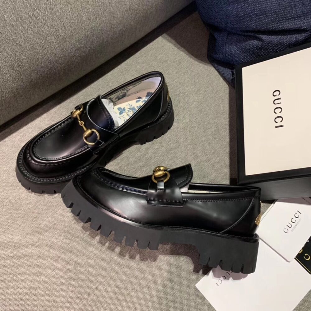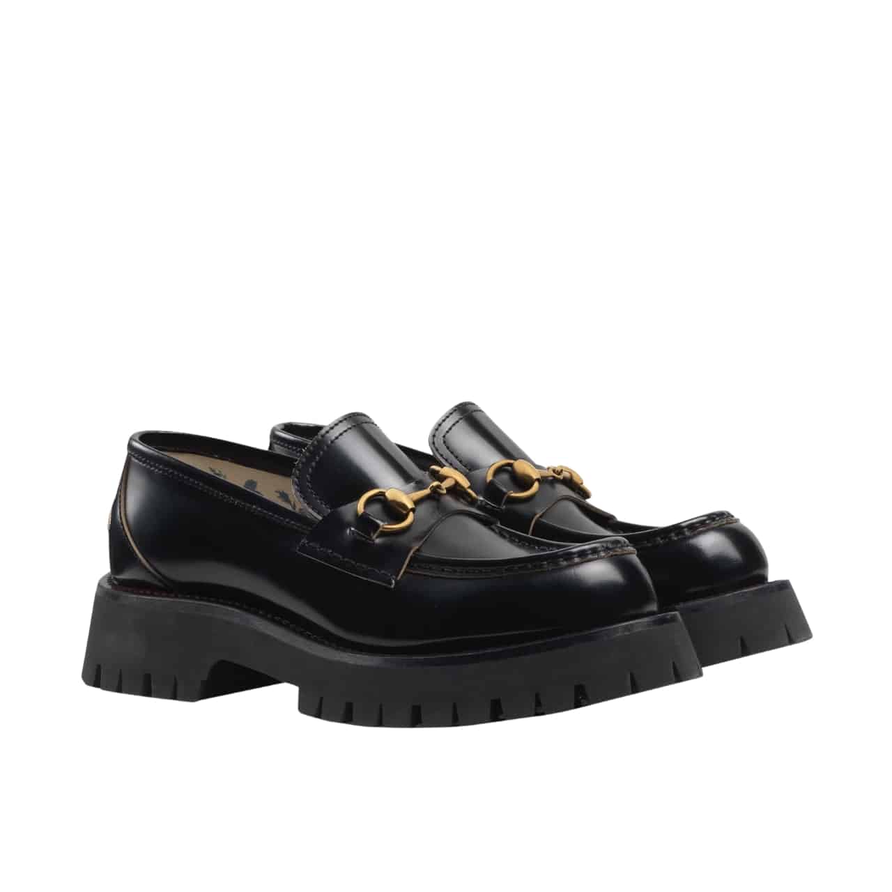 GUCCI WOMEN’S LEATHER LUG SOLE HORSEBIT LOAFERS BLACK 577236 DS800 1000