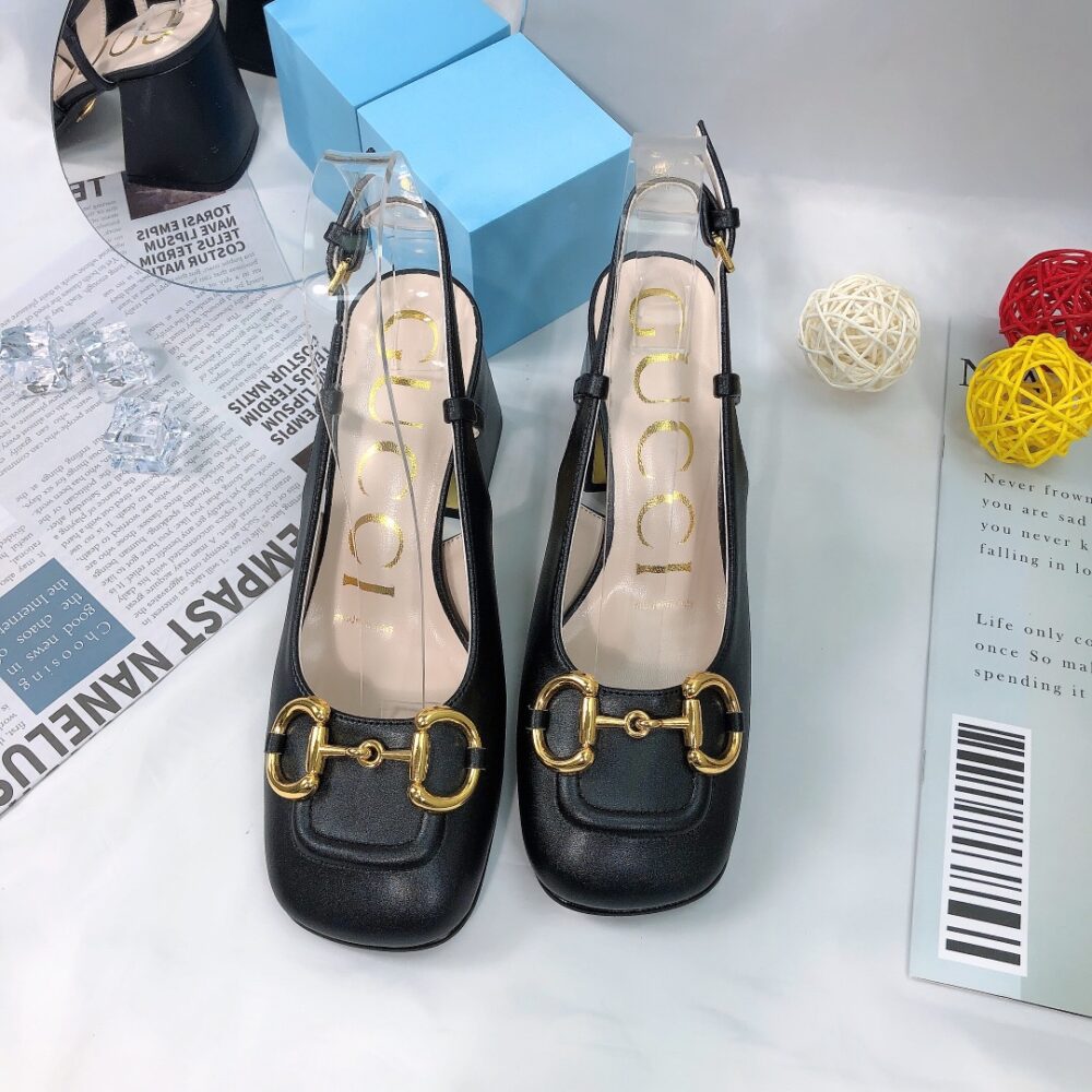 GUCCI WOMEN’S MID HEEL SLINGBACK WITH HORSEBIT BLACK