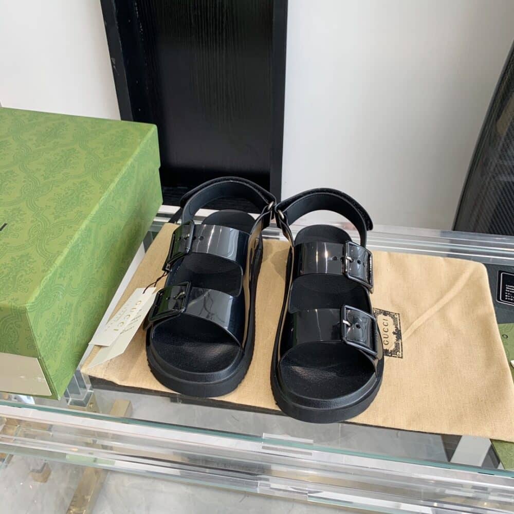 GUCCI WOMEN’S MINI DOUBLE G SANDAL RUBBER ‎BLACK 660243 J8700 1000