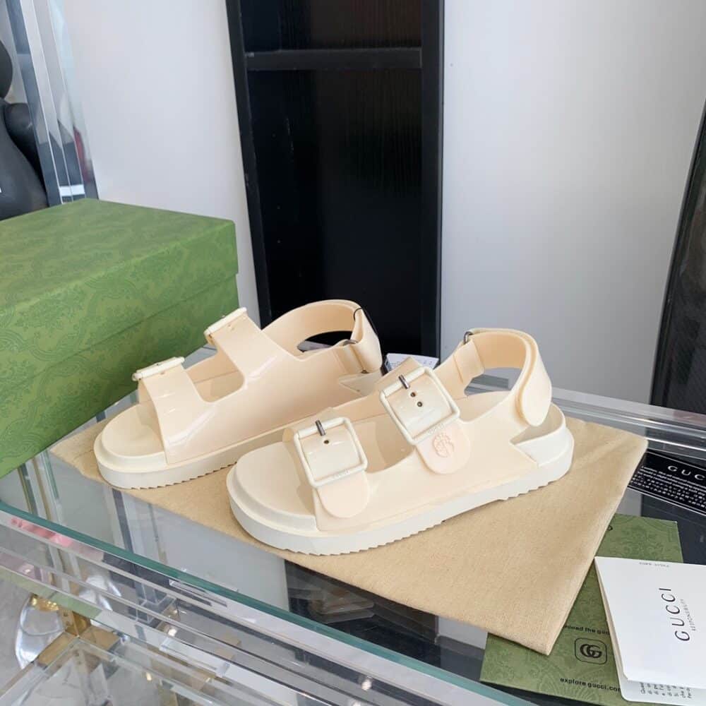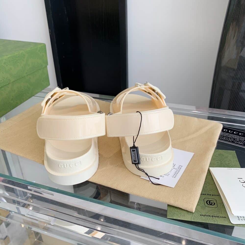 GUCCI WOMEN’S MINI DOUBLE G SANDAL RUBBER OFF WHITE 660243 J8700 9050