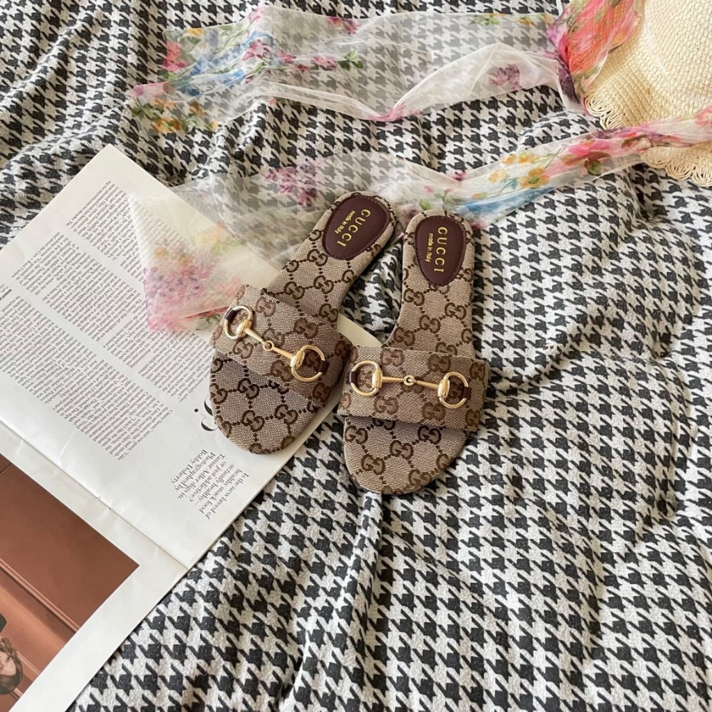 Gucci Women’s Slide Sandal With Horsebit Beige And Dark Brown GG Canvas 835828 FAB10 2543