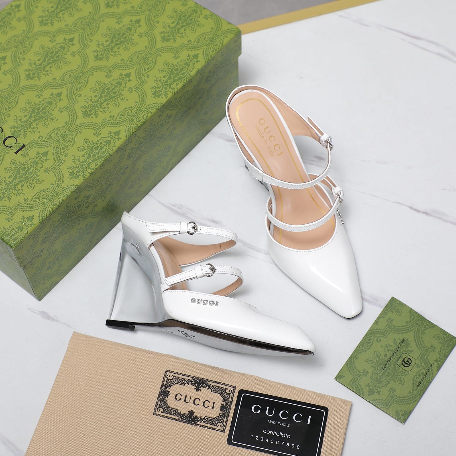 GUCCI WOMEN’S WEDGE MULE WHITE 827856 CLG00 9014