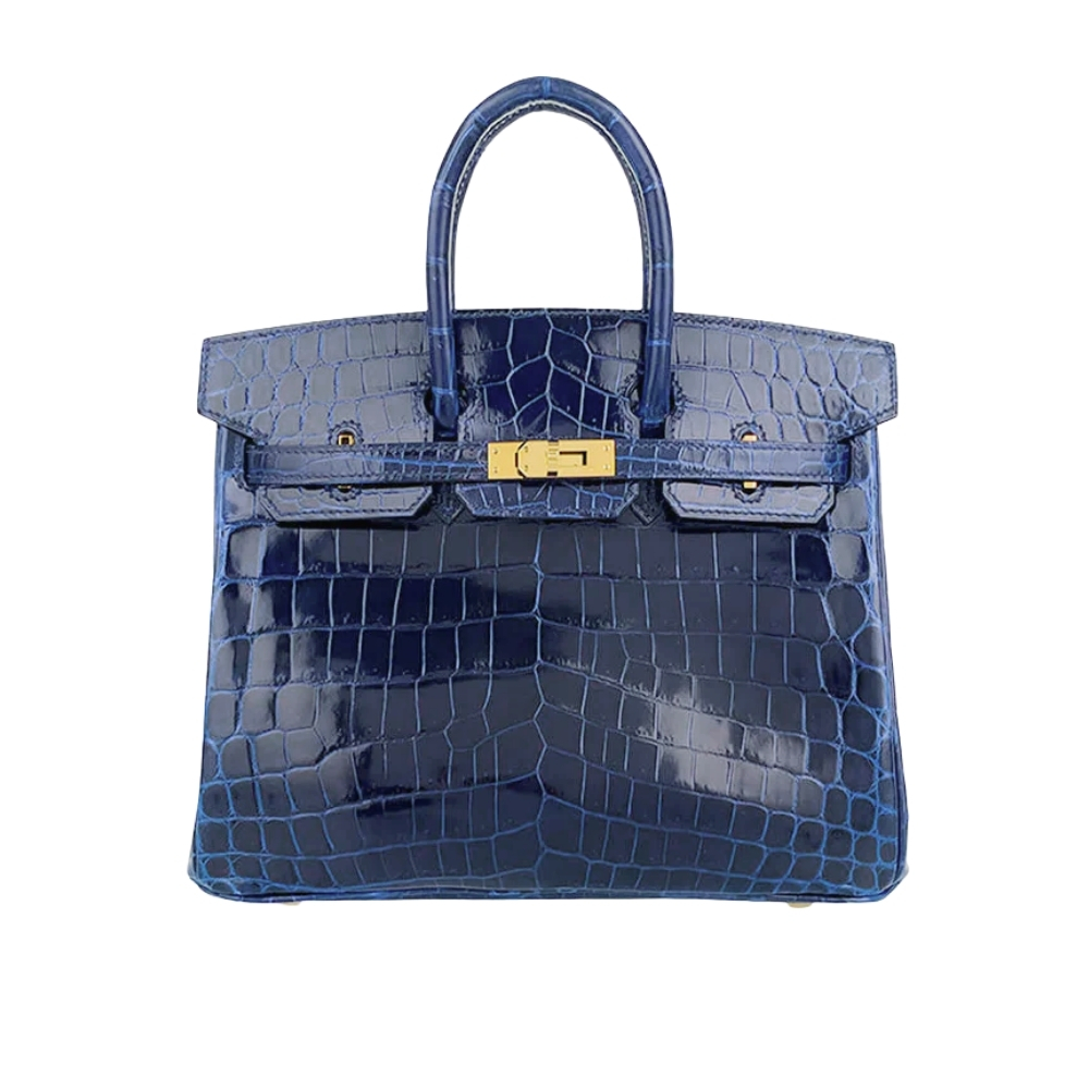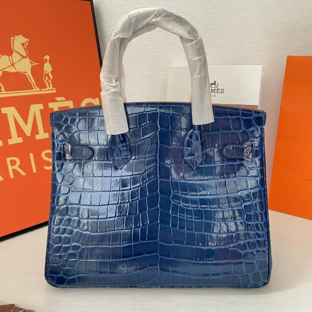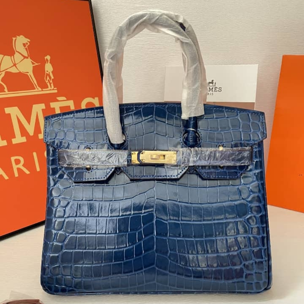 Hermes Birkin 25 Crocodile / Gold Tone Hardware / Dark Blue / 9.8 inches / Handle Bags / Luxury Bags