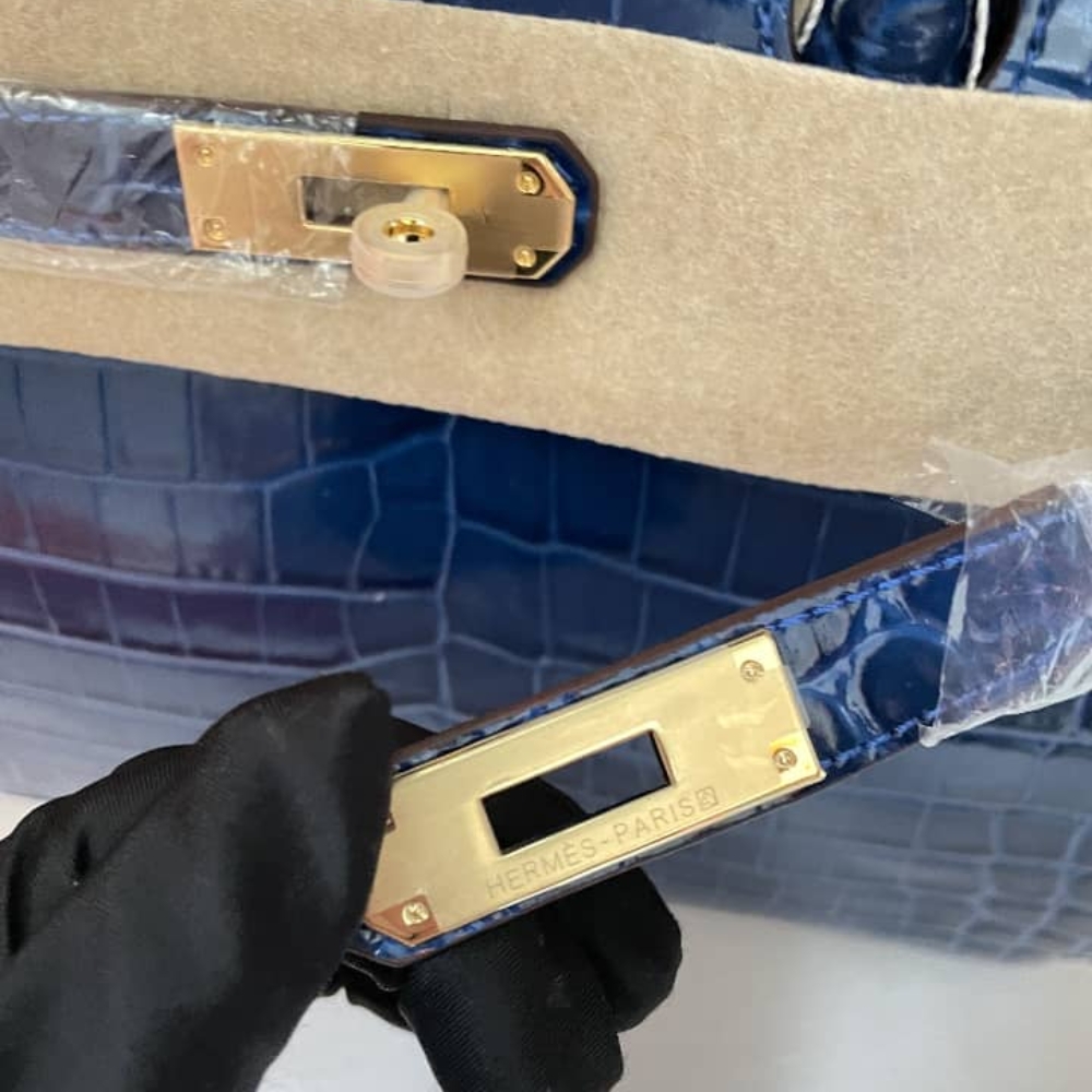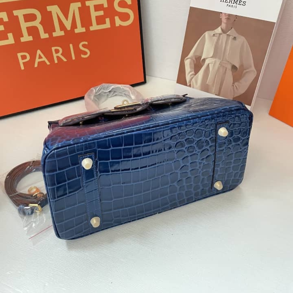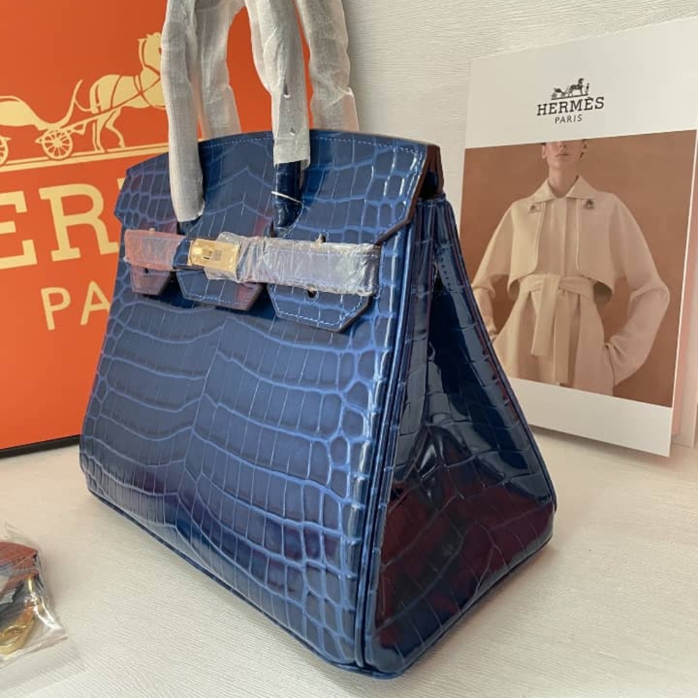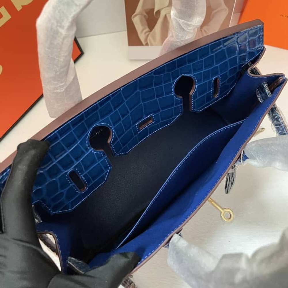 Hermes Birkin 25 Crocodile / Gold Tone Hardware / Dark Blue / 9.8 inches / Handle Bags / Luxury Bags