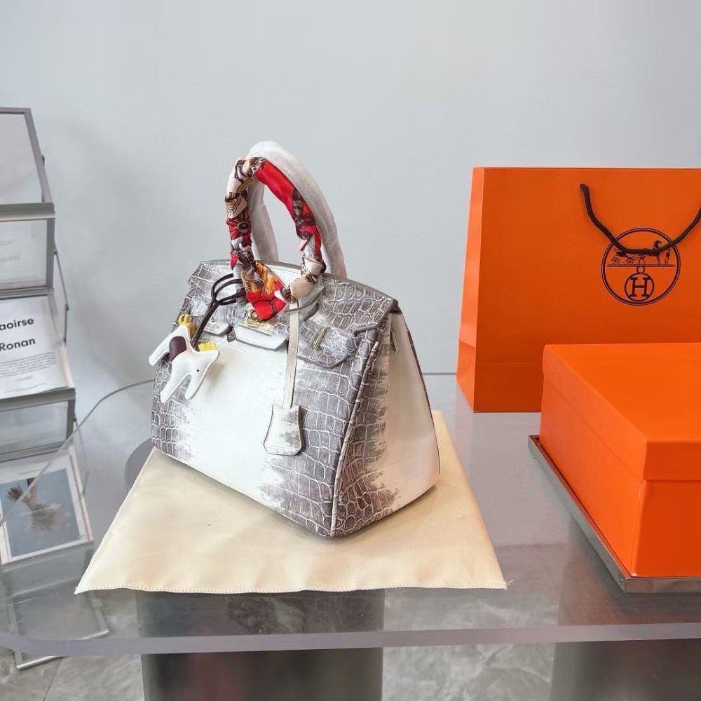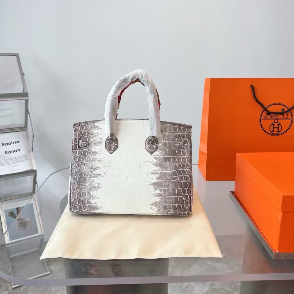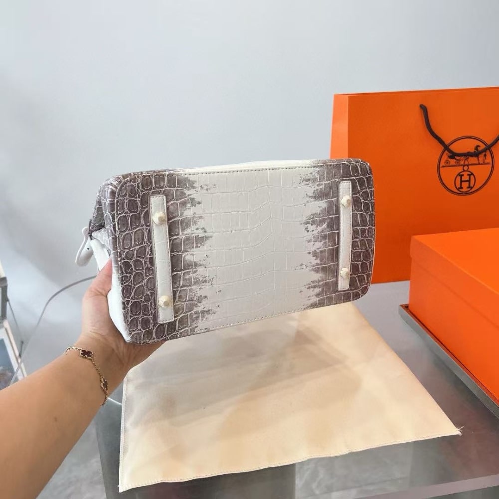 Hermes Birkin 25 Niloticus Crocodile Himalaya Blanc / 25 cm / 9.8 inches