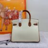 The Hermes Birkin 30 in Togo brushed leather, featuring a sophisticated beige and brown color combination. It is accented with luxurious gold-tone hardware and a signature lock closure. Known for its structured silhouette and timeless design, this 30cm Birkin is both practical and elegant, making it a perfect statement piece for any occasion.