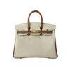 The Hermes Birkin 30 in Togo brushed leather, featuring a sophisticated beige and brown color combination. It is accented with luxurious gold-tone hardware and a signature lock closure. Known for its structured silhouette and timeless design, this 30cm Birkin is both practical and elegant, making it a perfect statement piece for any occasion.