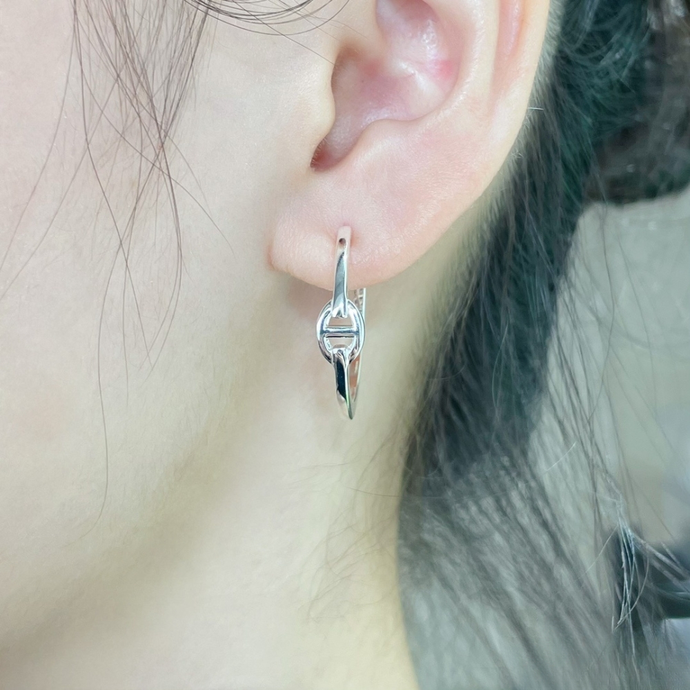 Hermes Chaine d’Ancre Enchainee Earrings / Siver metal / Fit Daily Essentials / Chic Jewelry
