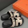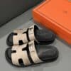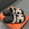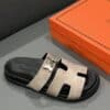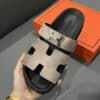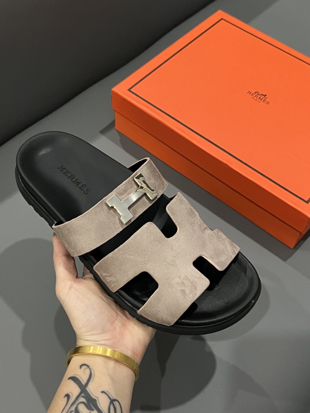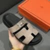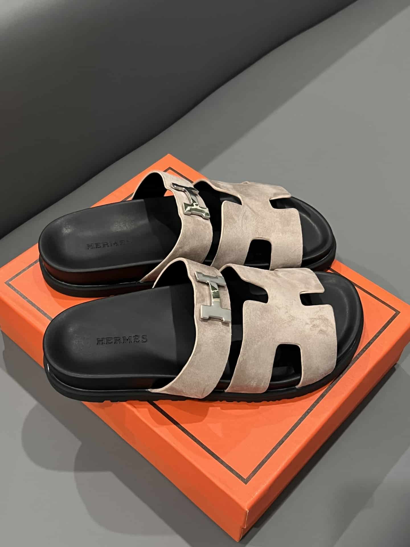 HERMES CHYPRE SANDAL SUEDE H LOGO SILVER HARDWARE LIGHT BROWN