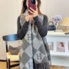 The Hermès Diamond H Logo Wool Shawl in gray is a luxurious accessory featuring an intricate jacquard-woven diamond motif with contrasting “H” signatures. Crafted from wool and cashmere blend, its generous proportions allow it to be styled elegantly as both a voluminous wrap or a classic muffler. Finished with delicate fringed edges, this timeless piece perfectly combines the Maison’s equestrian heritage with modern geometric design.
