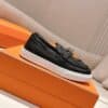 - Loafer style slip-on sneaker in suede leather with functional Kelly buckle.