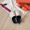 - Mule in suede with iconic “H” cut-out detail