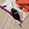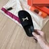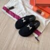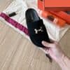 - Mule in suede with iconic “H” cut-out detail