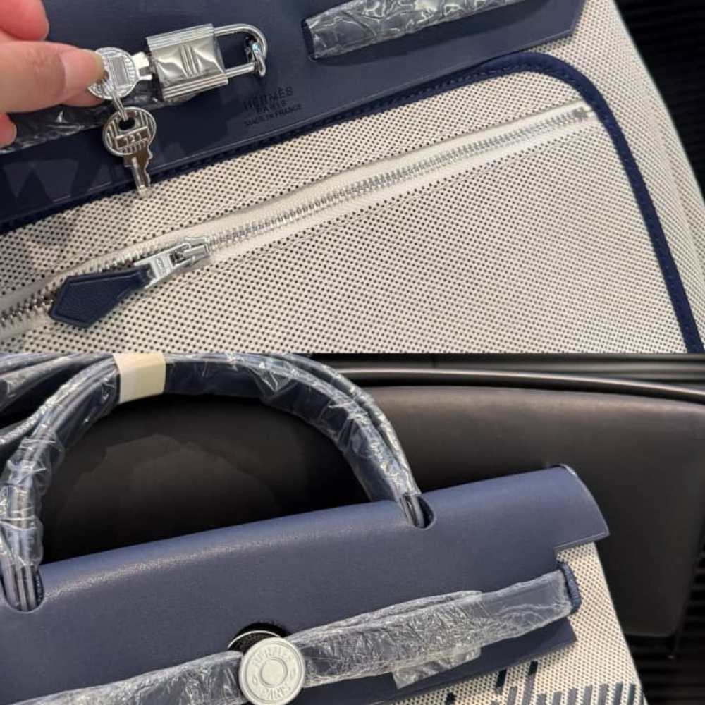Hermes Herbag 31 Brides De Gala And Blue Indigo Blue Enamel / 31 cm / 12.2 inches