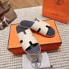 A refined slide sandal featuring the iconic H cut-out design, paired with a soft neutral tone and clean lines for effortless everyday elegance.