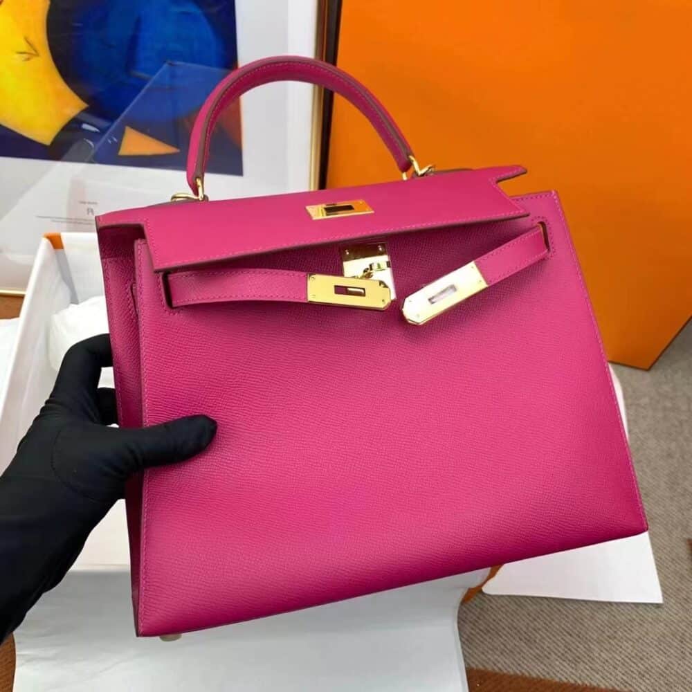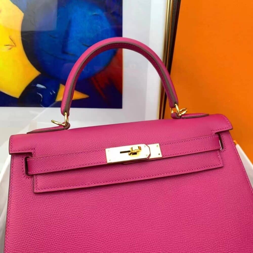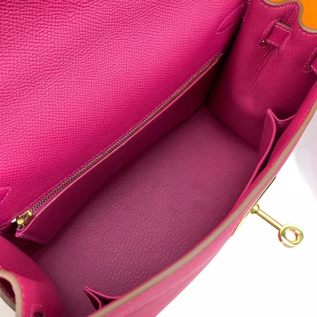 Hermes Kelly 25 Epsom Pourpre Dark Pink Gold Hardware / 25cm / 9.8 inches