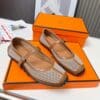 - Ballet flat in crochet knit and leather with sole featuring the iconic Medor studs.