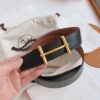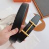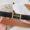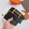 HERMES LEATHER BELT GOLD BUCKLE BLACK 38MM