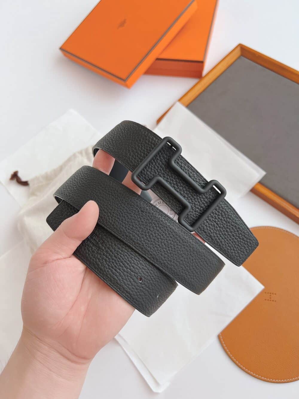 HERMES LEATHER BELT WITH H BUCKLE BLACK 38MM