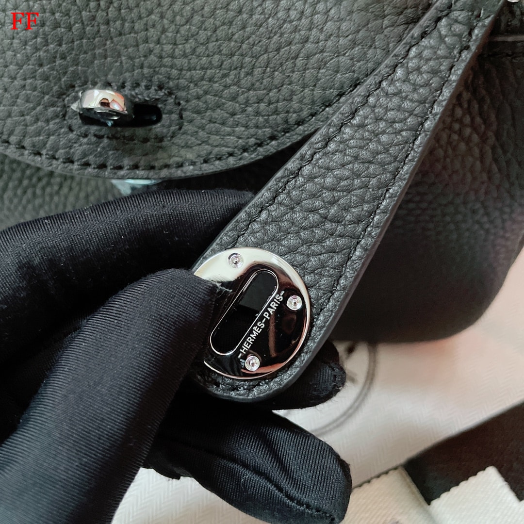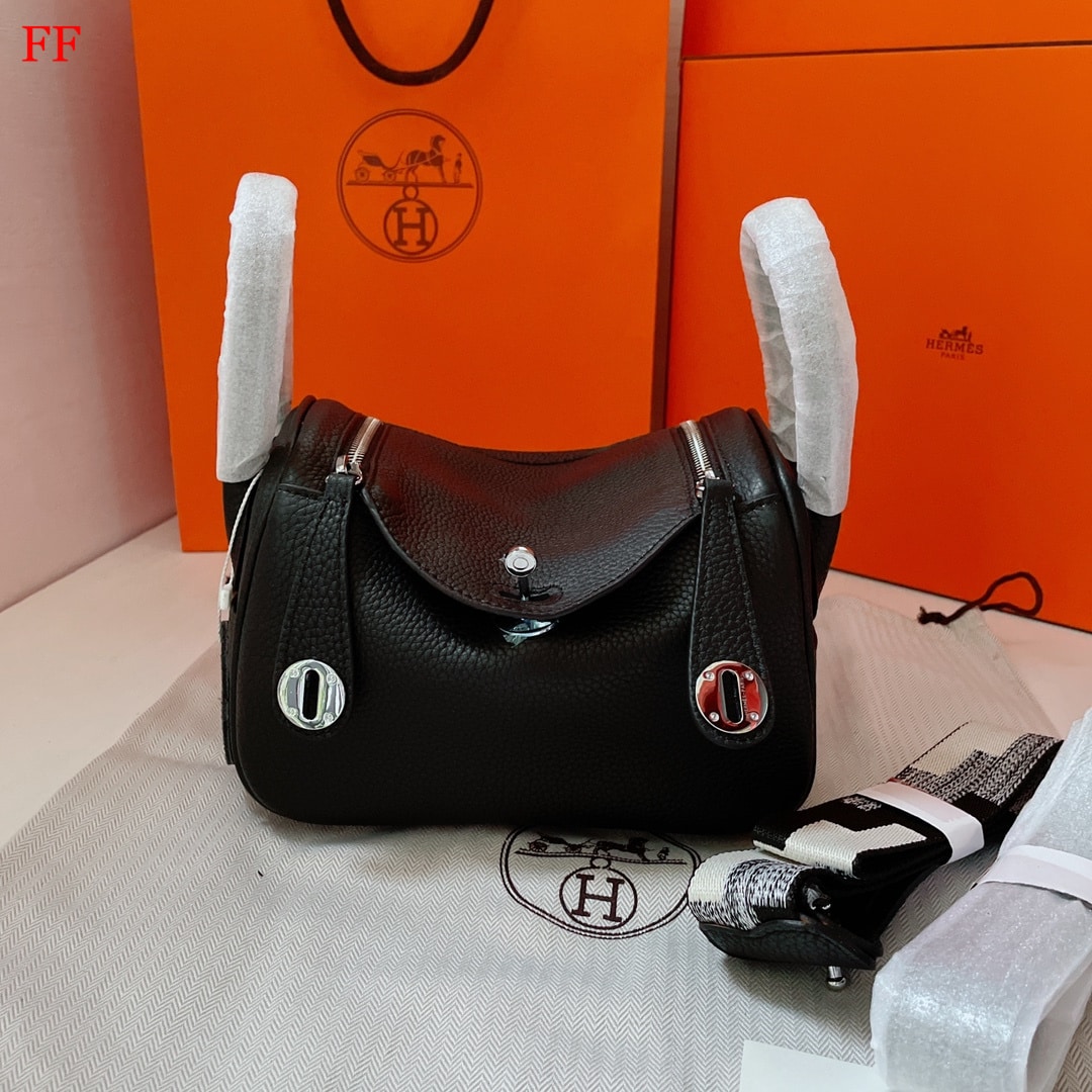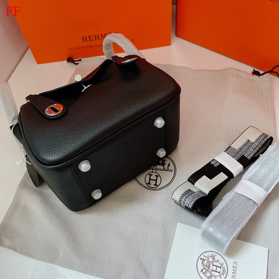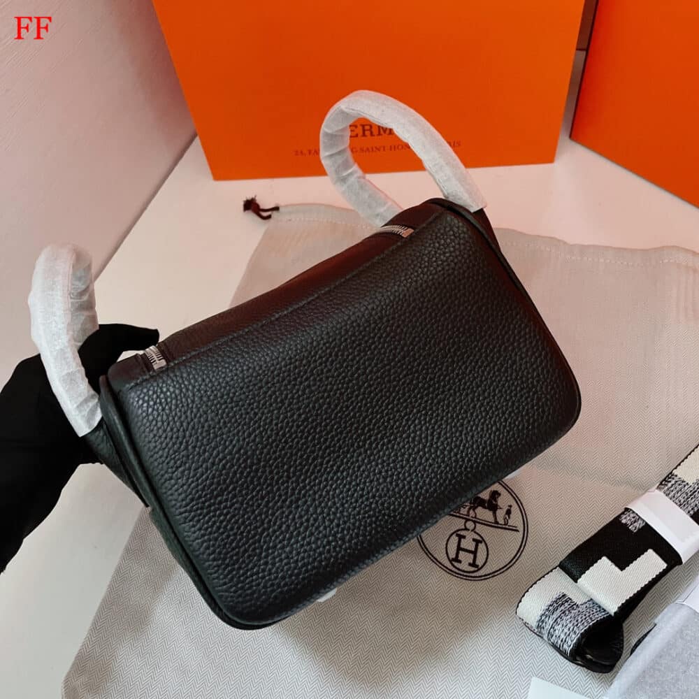 Hermes Lindy Mini Bag With Silver Hardware / Black 20 Cm