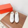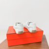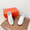 hese Hermès sneakers boast an elegant and sophisticated look. The minimalist design is highlighted by an embroidered “H” logo on the side, paired with white laces and a contrasting black rubber sole. These sneakers are designed for comfort and style, perfect for those who appreciate luxury.