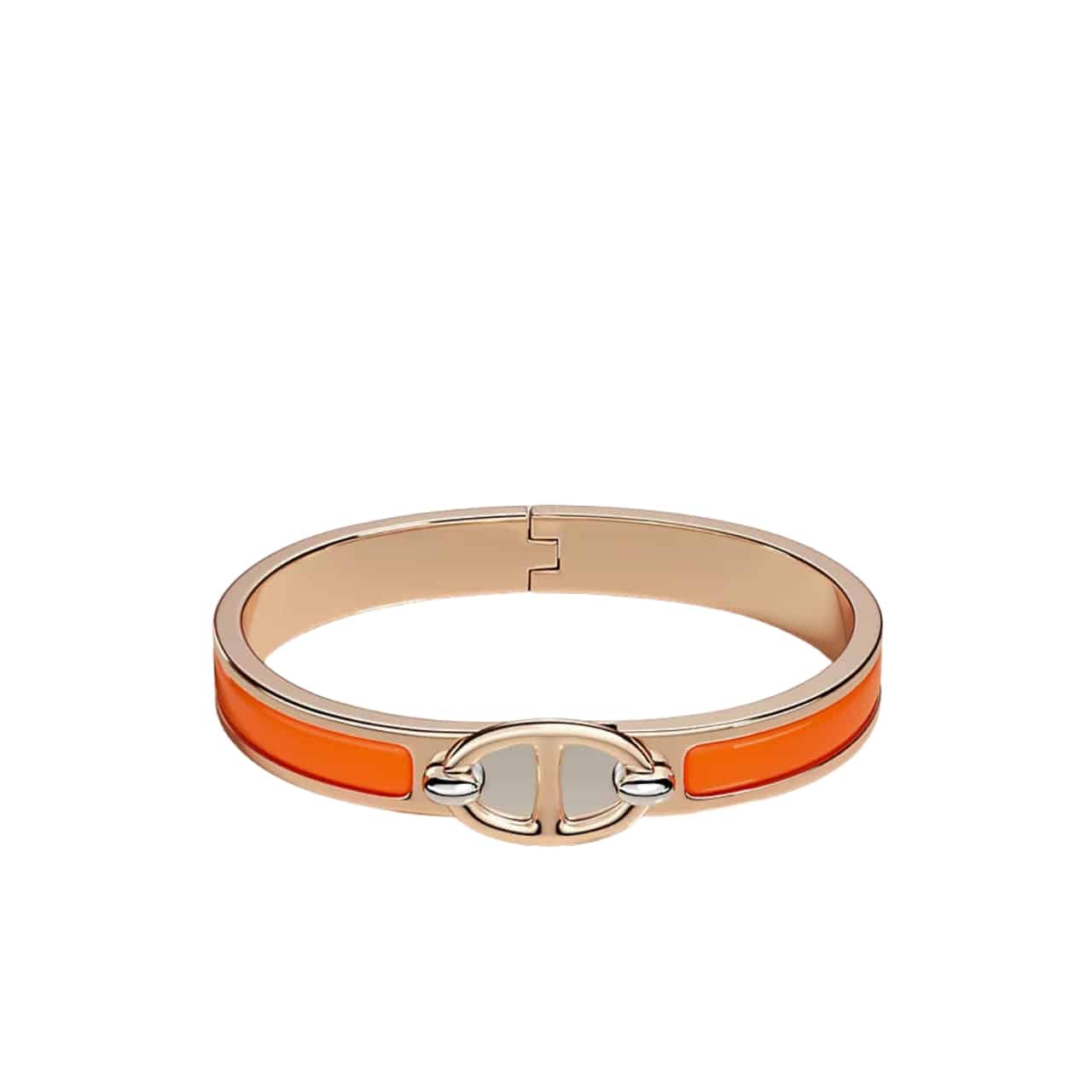 Hermes Mini Clic Anchor Chain Bracelet Rose Gold Tone With Orange