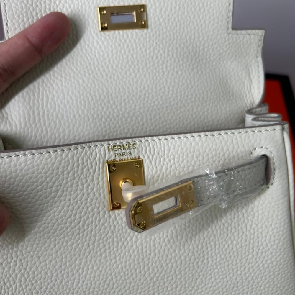 Hermes Mini Kelly Bag Epsom White With Gold Hardware / 20cm / 7.8 inches