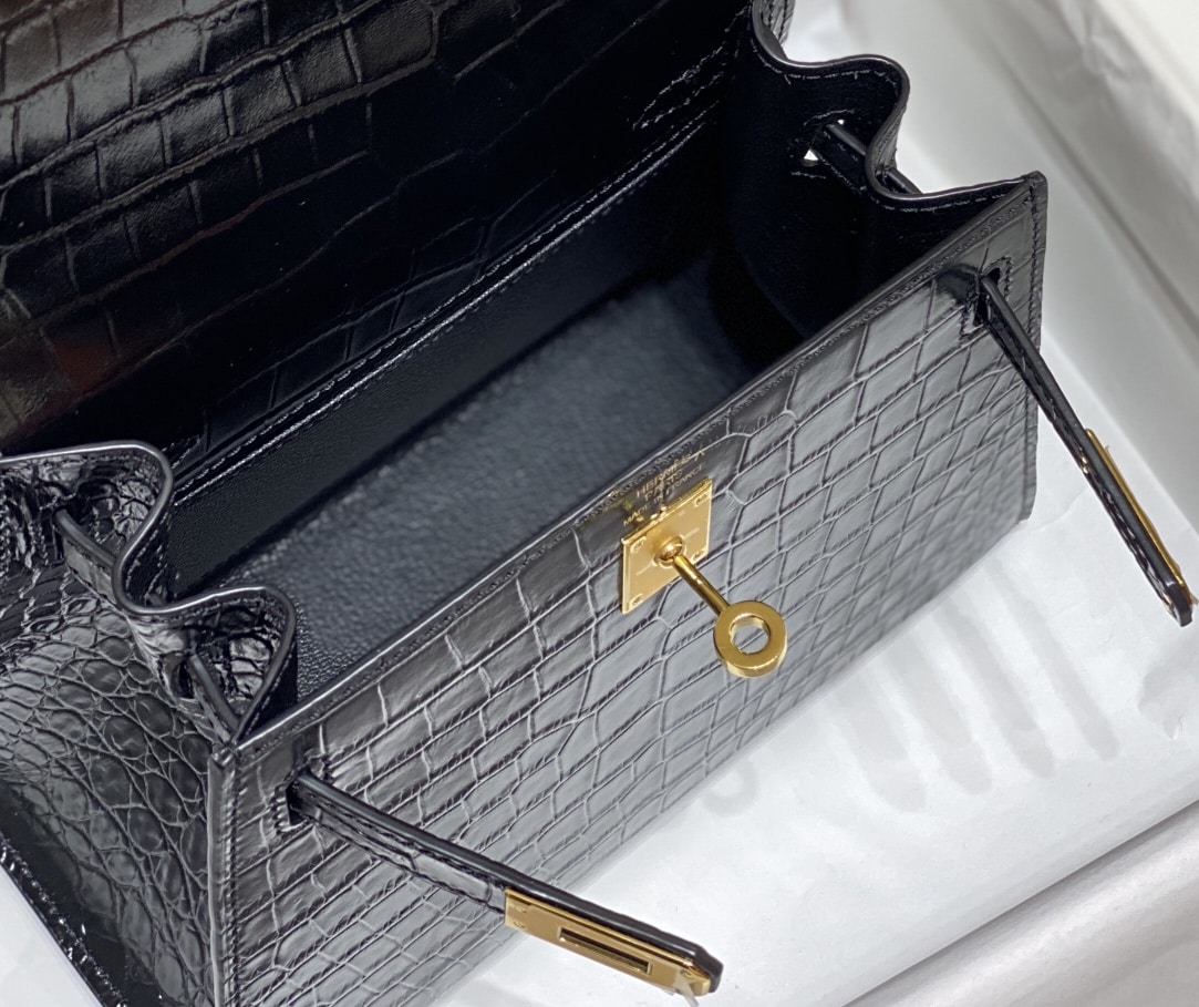 HERMES MINI KELLY K20 GOLD-TONED HARDWARE BLACK 20CM