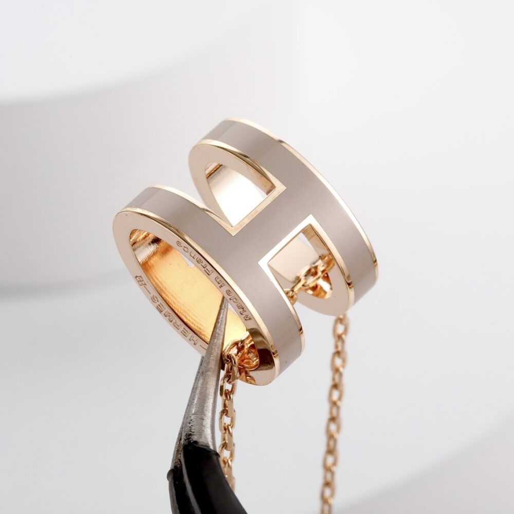 Hermes Mini Pop H Pendant Grey / Gold metal / Fit Daily Essentials / Chic Jewelry