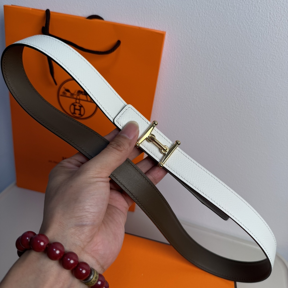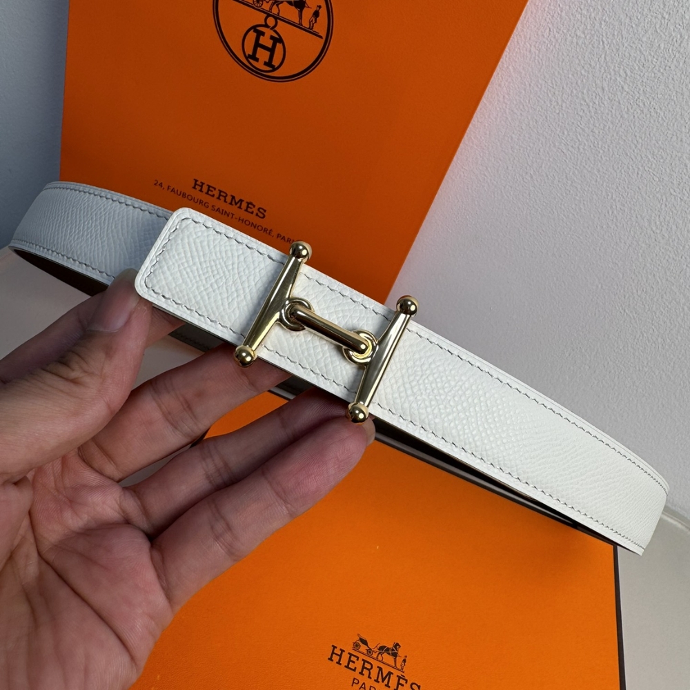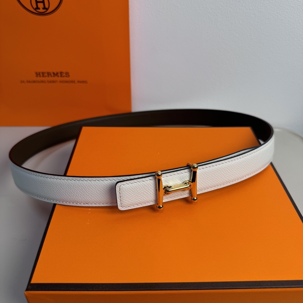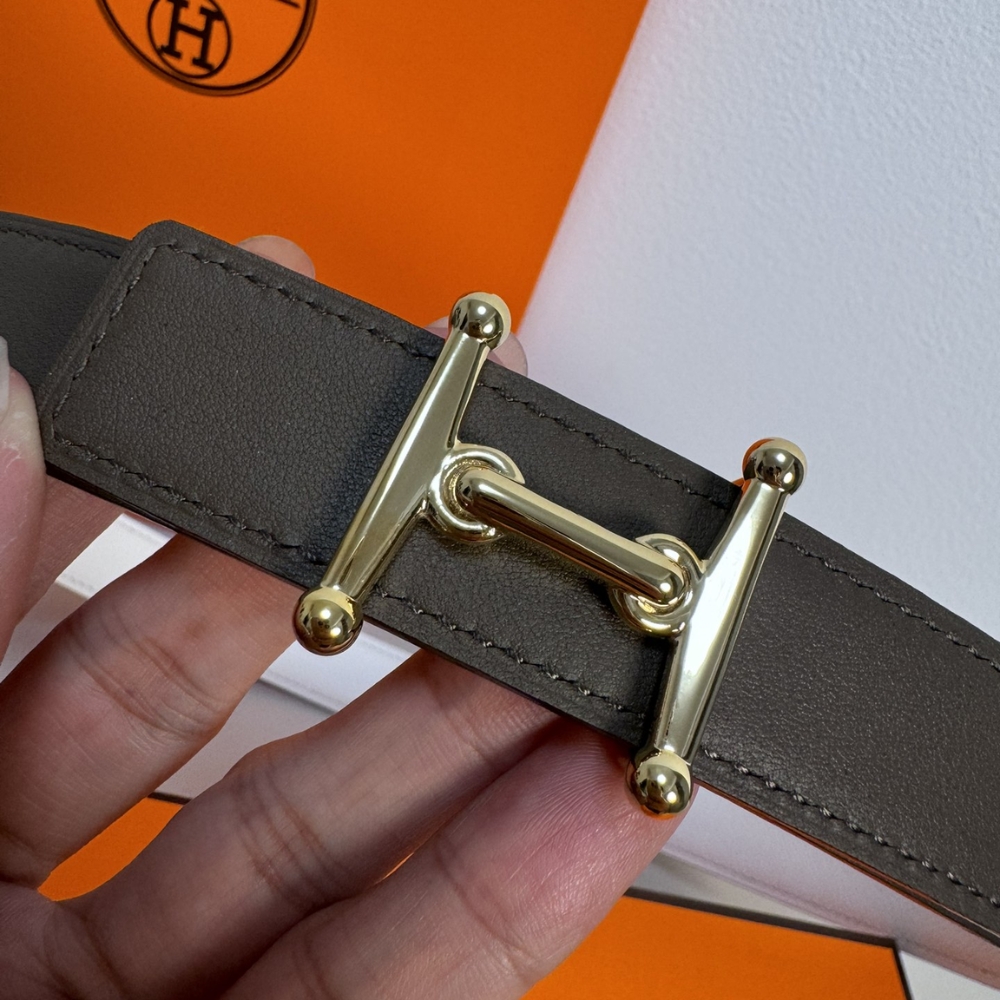 HERMES MORS H BELT BUCKLE AND REVERSIBLE LEATHER STRAP GOLD BLACK 24MM H077922CC06
