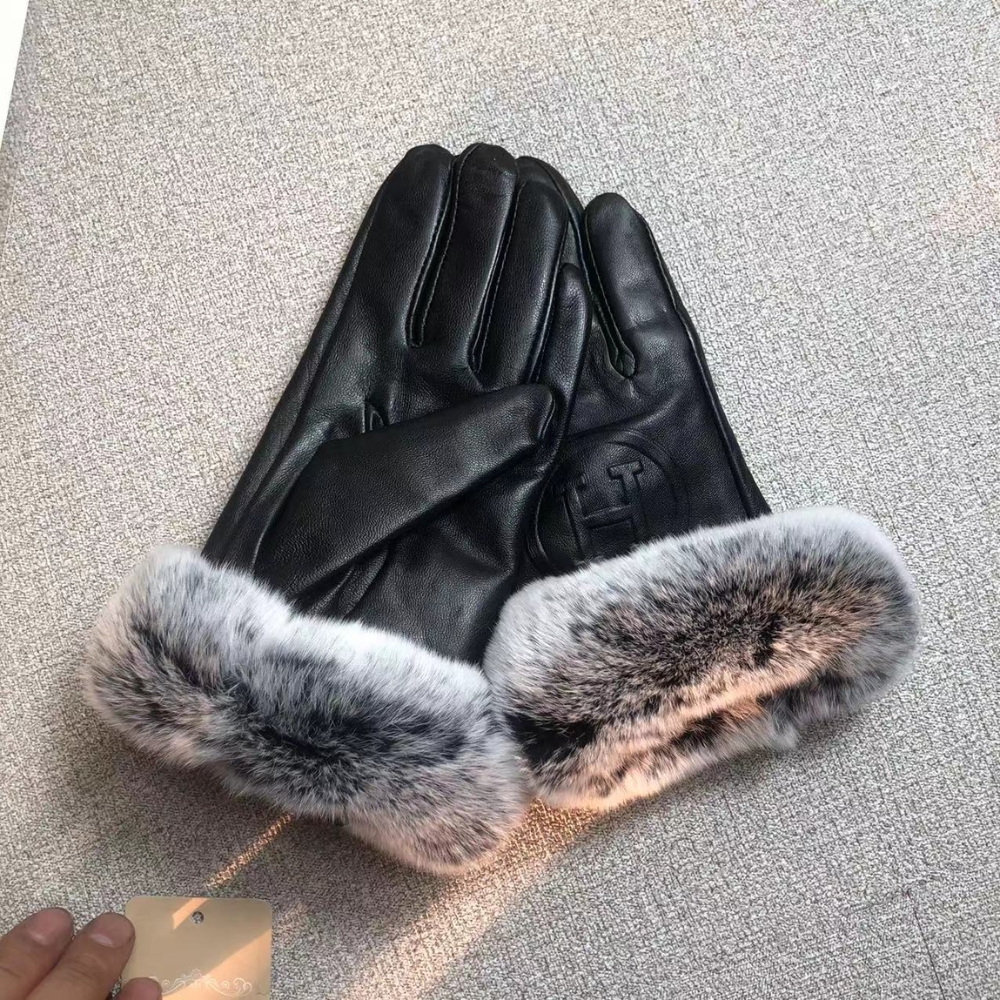 Hermes Rabbit Fur Black Leather Gloves / Cashmere lining / Elegant for winter / Cozy Gloves