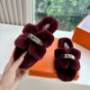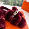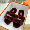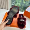 Hermes Shearling Fur Oran Silver Buckle Sandal Wine Red Wool