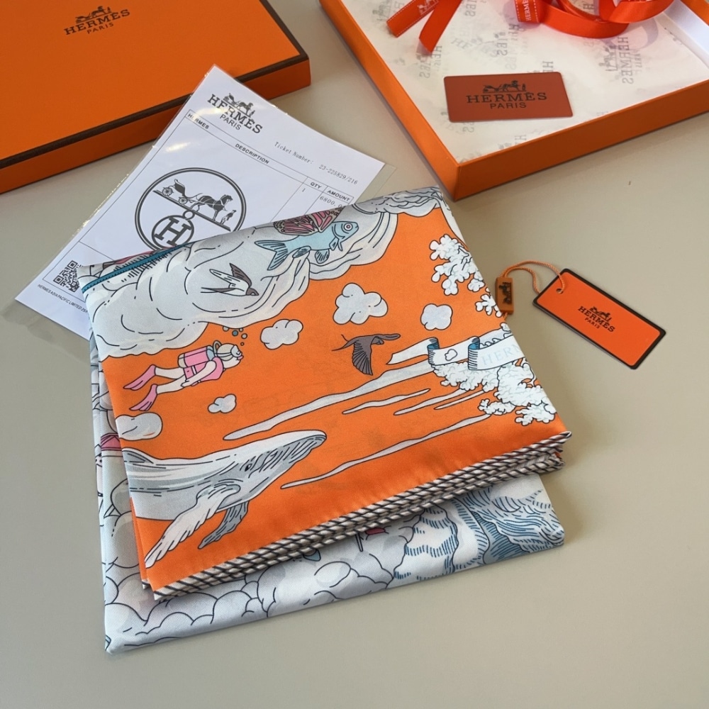 Hermes Sur Mon Nuage Scarf Orange 90Cm H003900S 11
