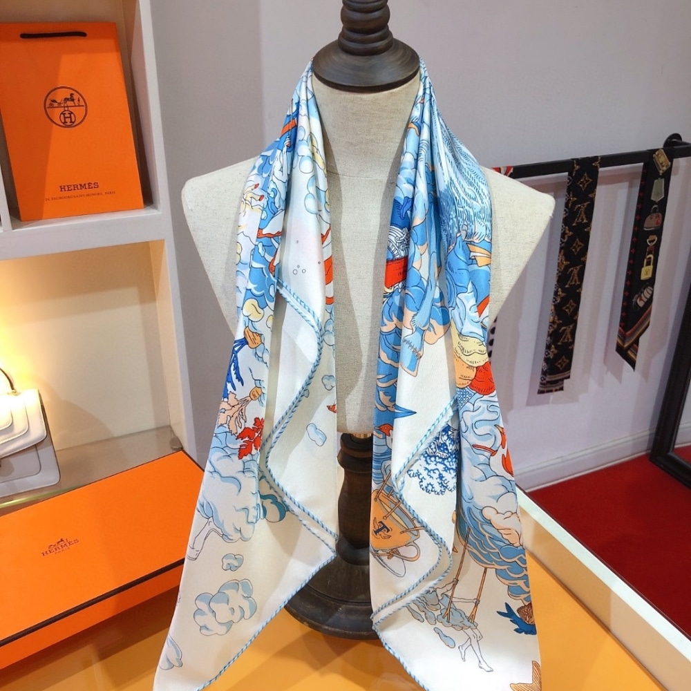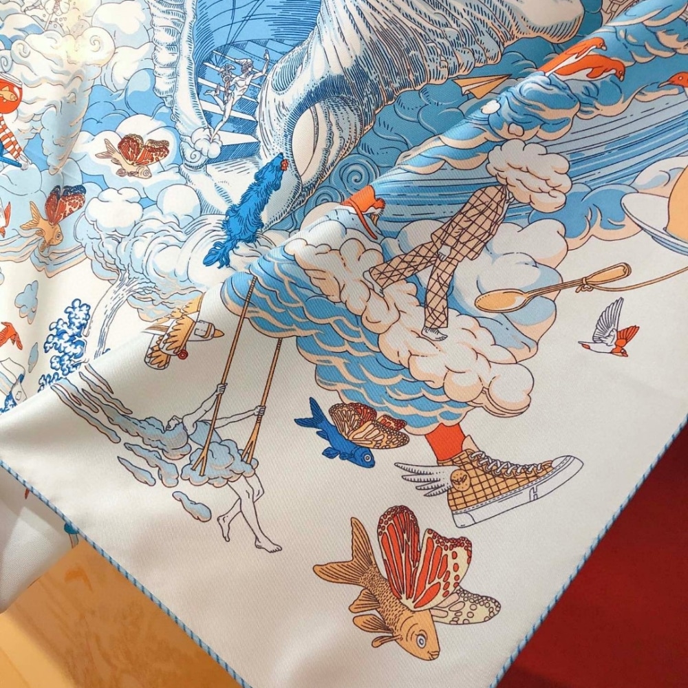 Hermes Sur Mon Nuage Scarf White 90Cm H003900S 05